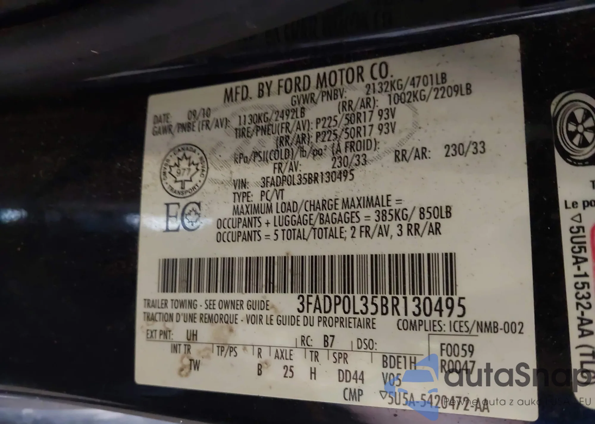 • VIN 3FADP0L35BR130495