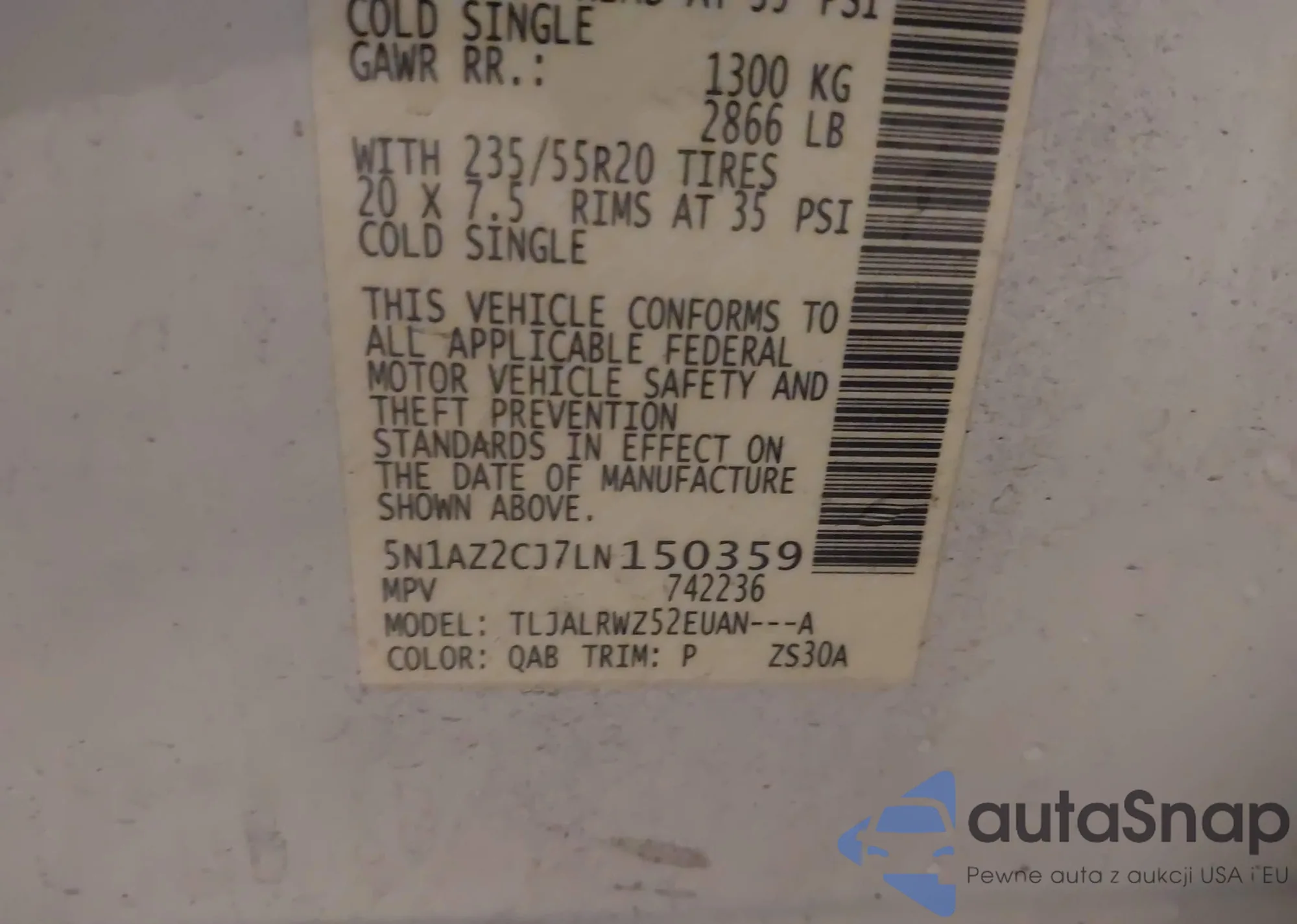 • VIN 5N1AZ2CJ7LN150359