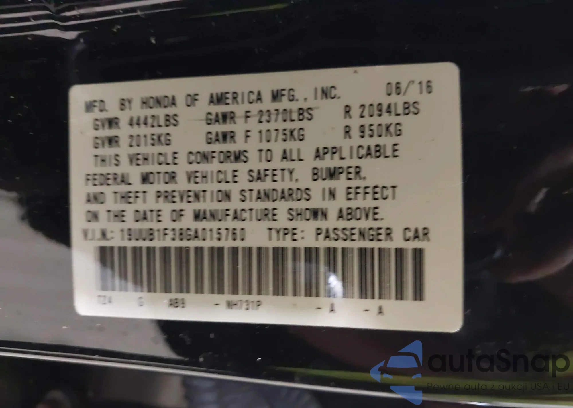 • VIN 19UUB1F38GA015760