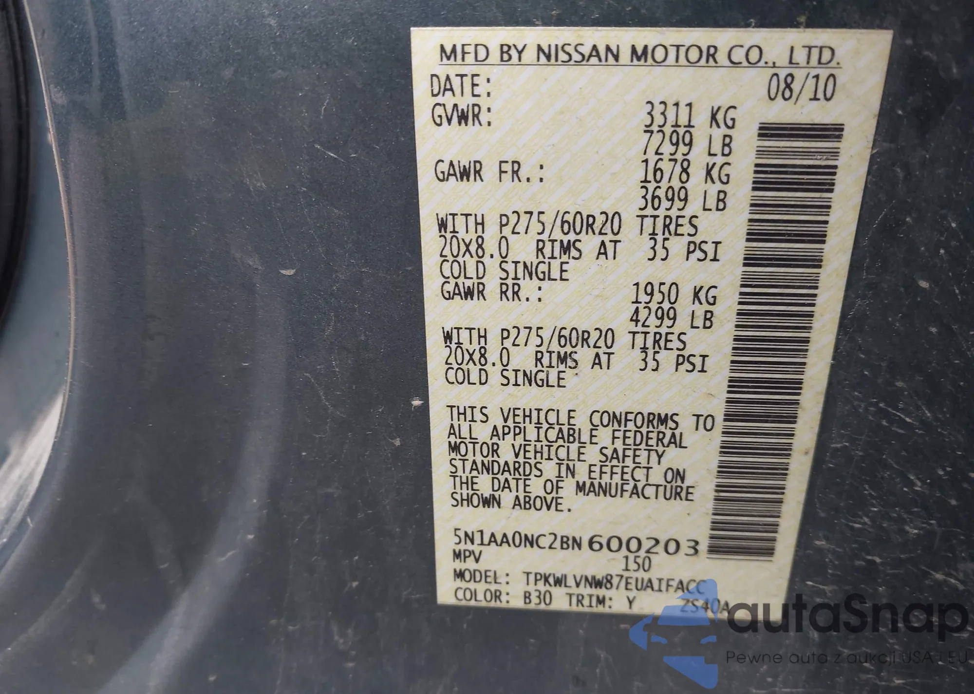 • VIN 5N1AA0NC2BN600203