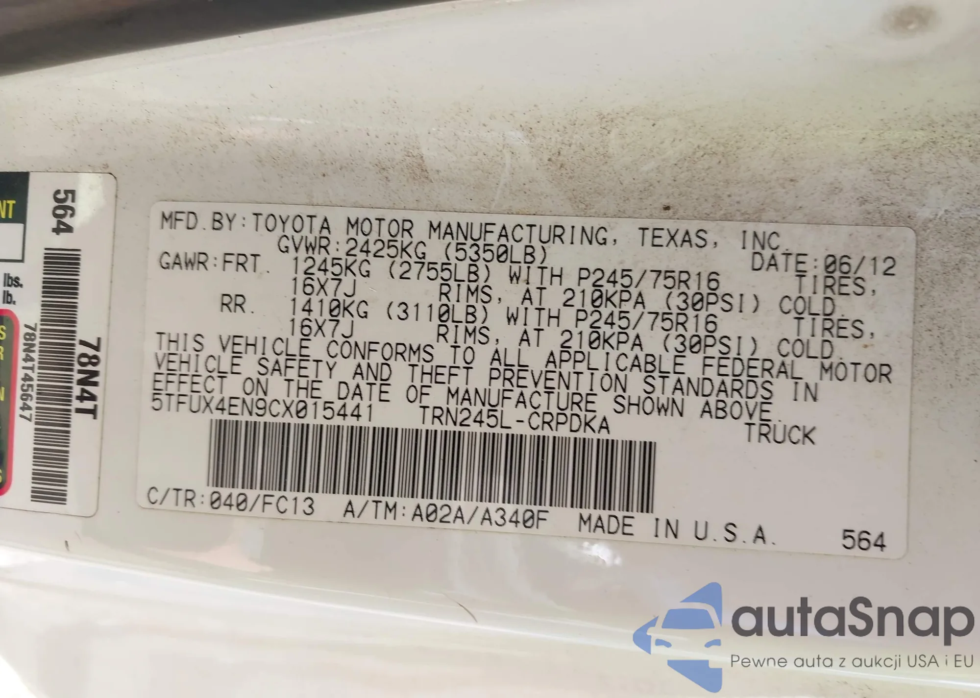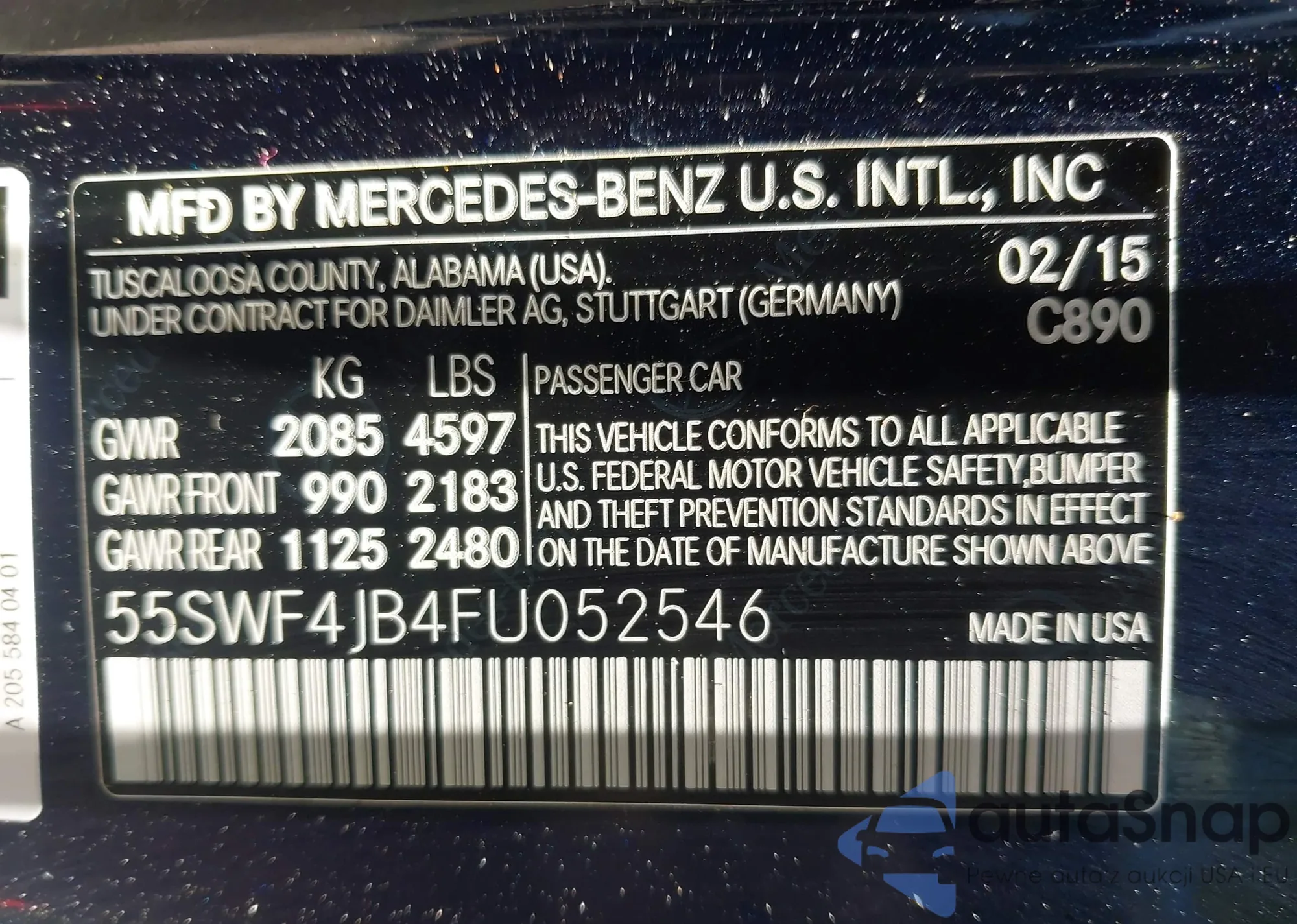 LOT: 42502468 VIN: 55SWF4JB4FU052546