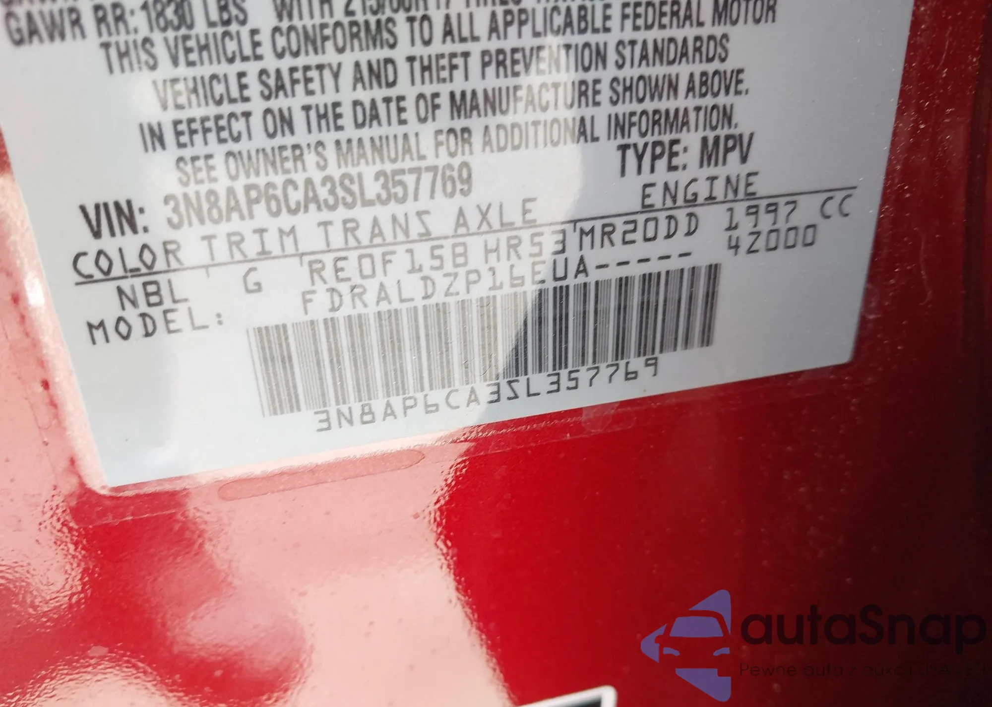 • VIN 1G1FW6S0XP4120389