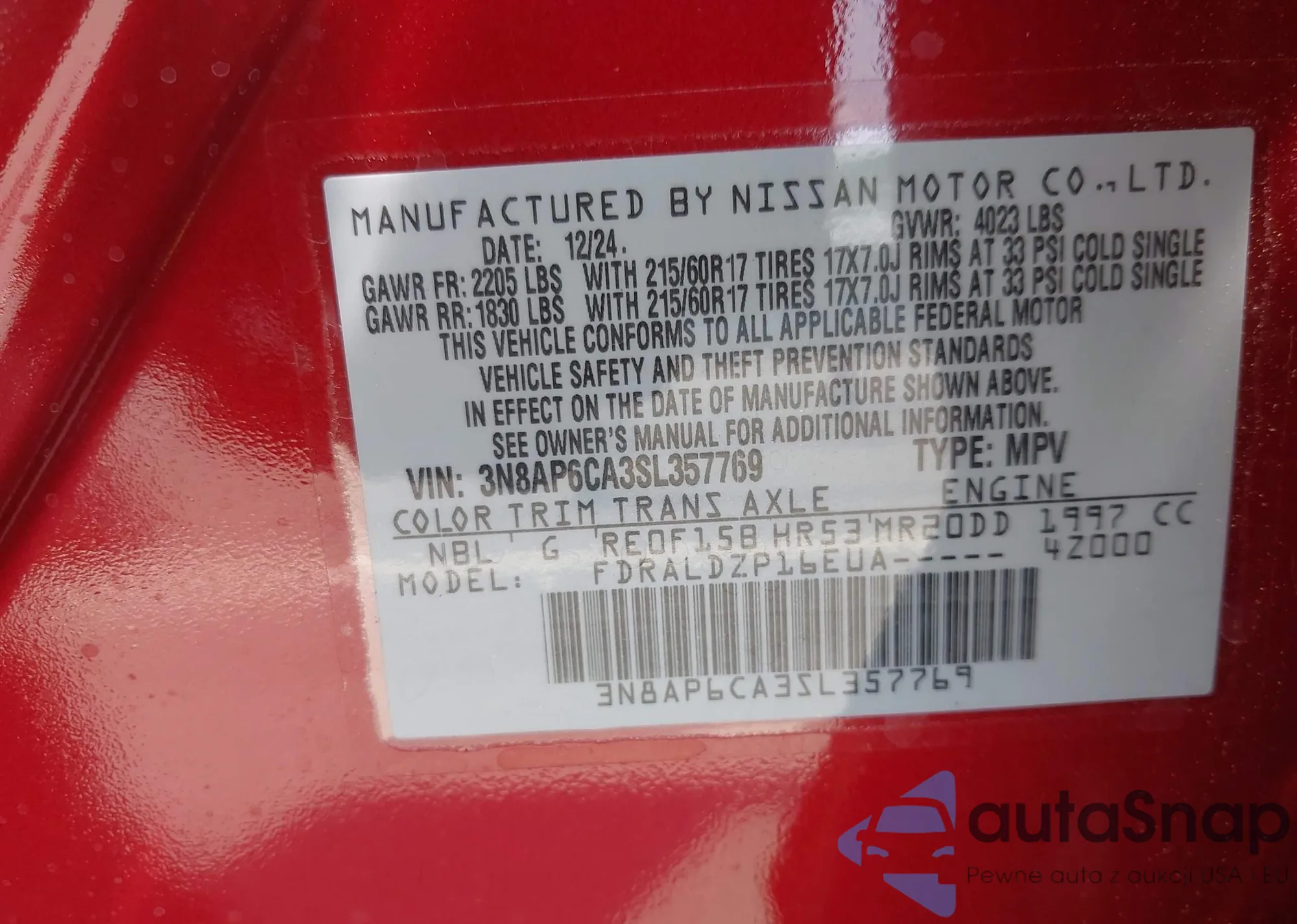 LOT: 42737092 VIN: WA1DECF34L1048163