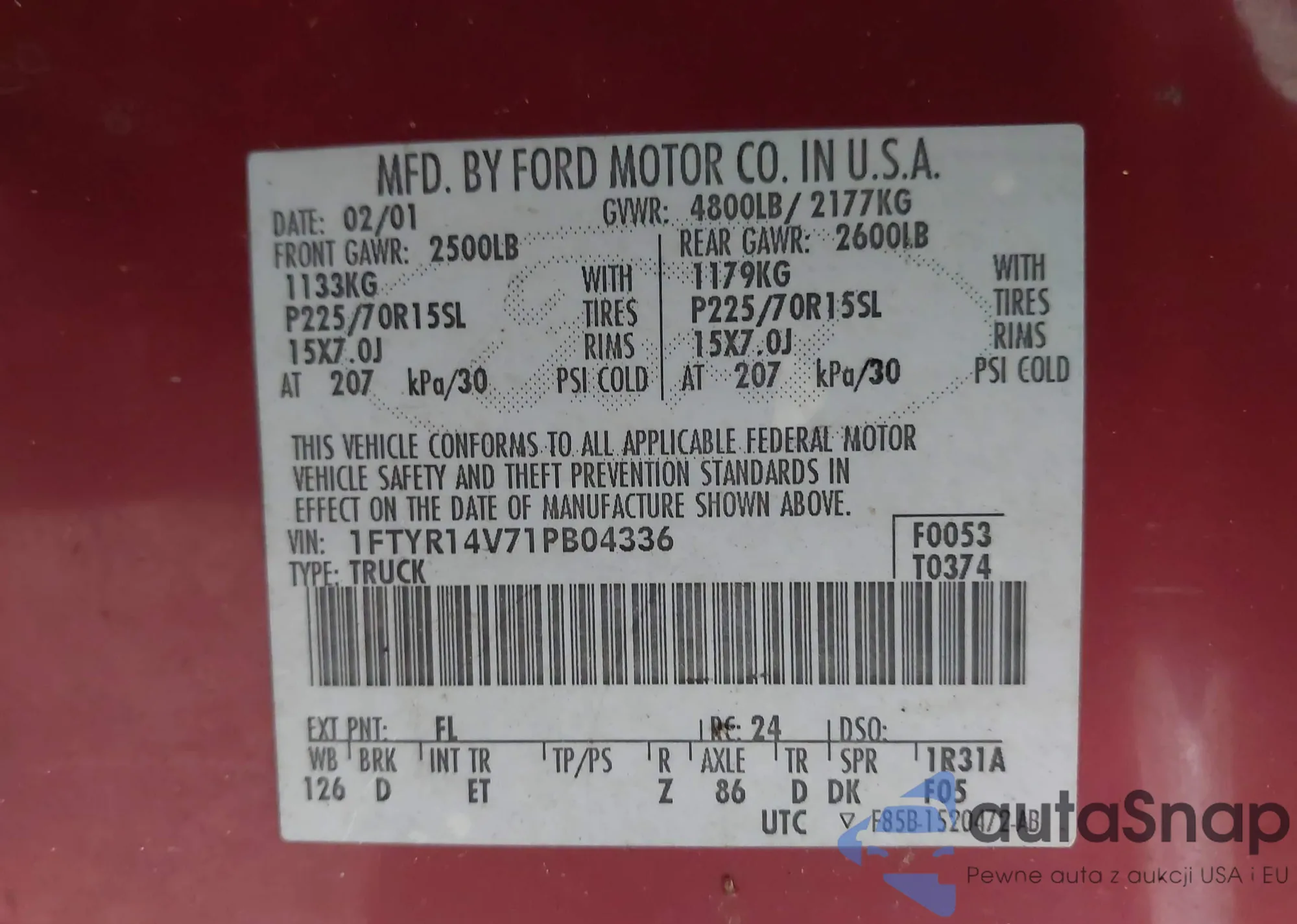 • VIN 1FTYR14V71PB04336