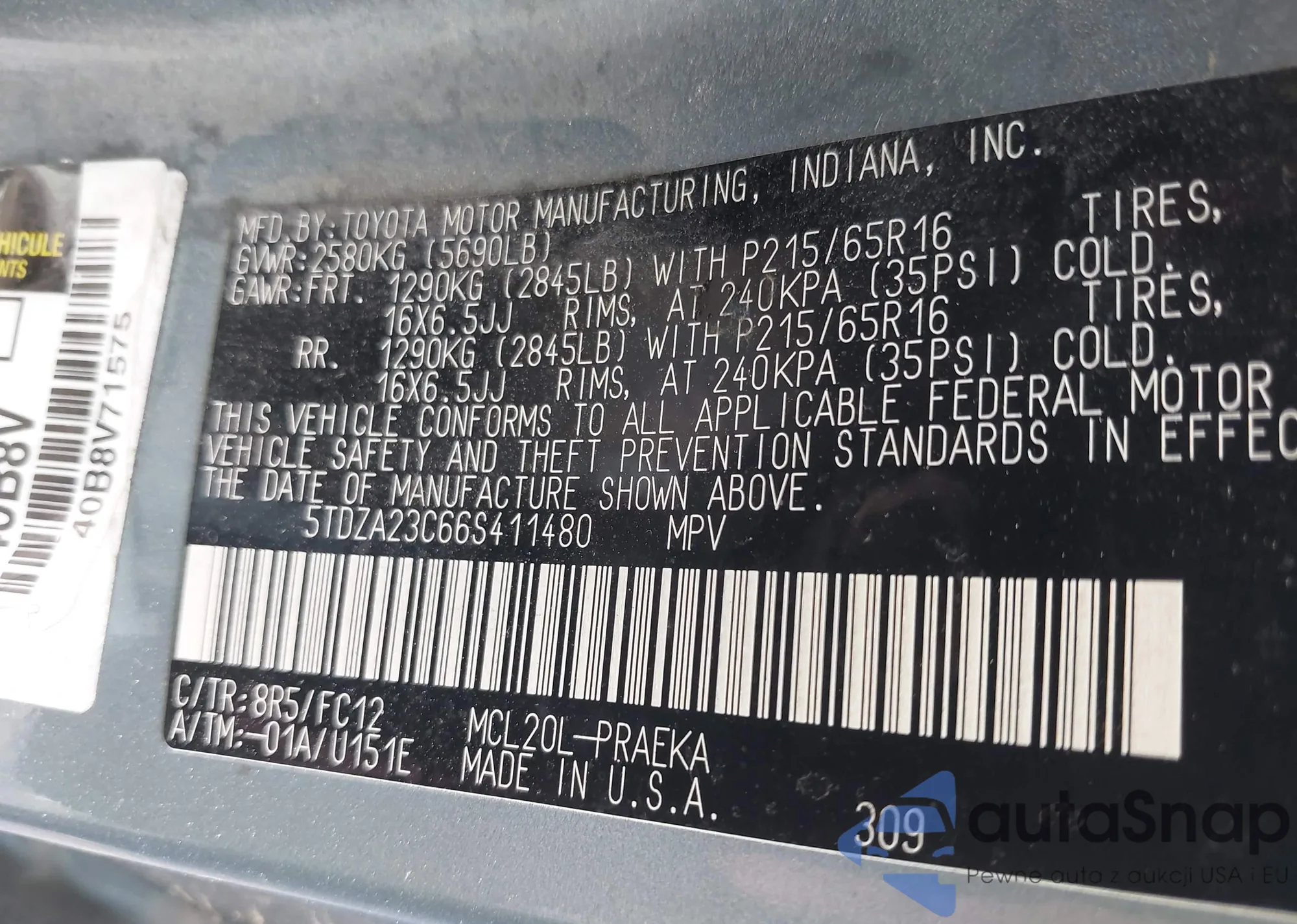 • VIN 5TDZA23C66S411480