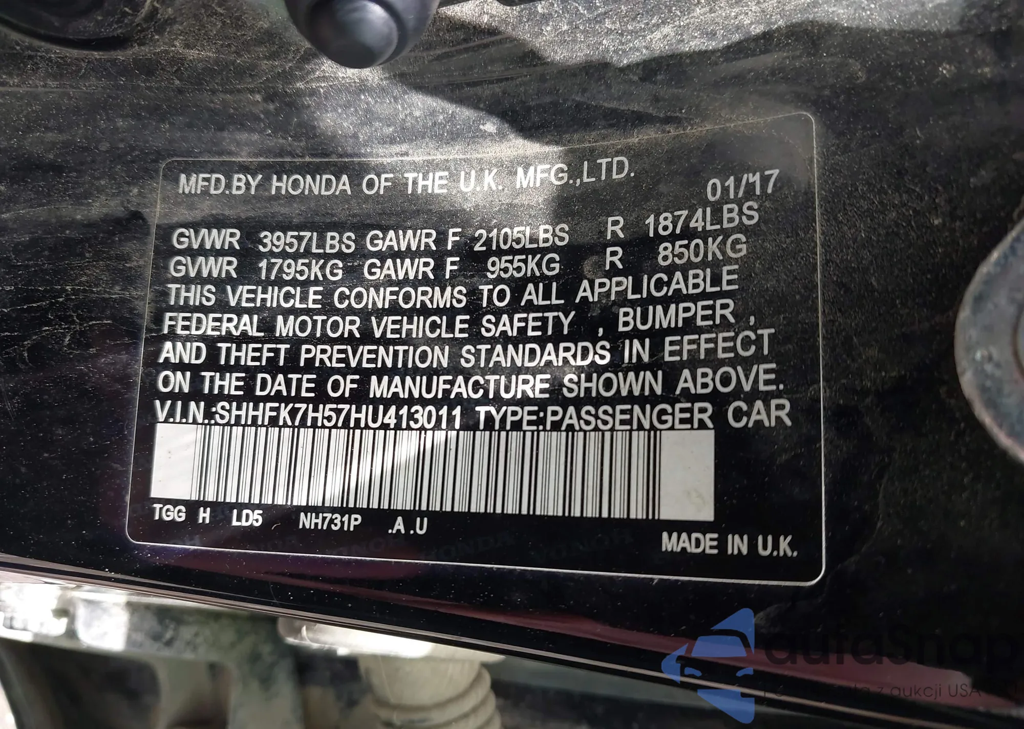 LOT: 42580793 VIN: KNDPR3A66M7924528