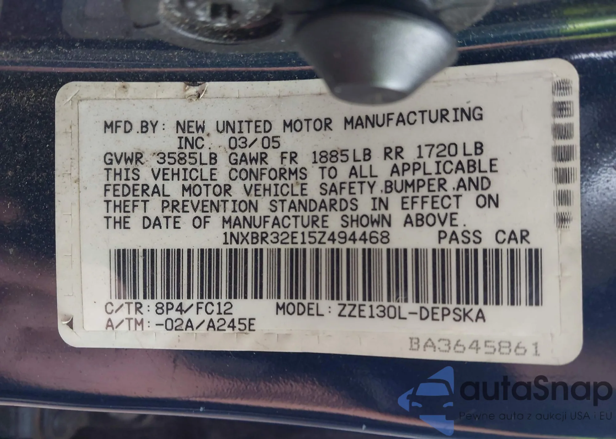 • VIN 1NXBR32E15Z494468
