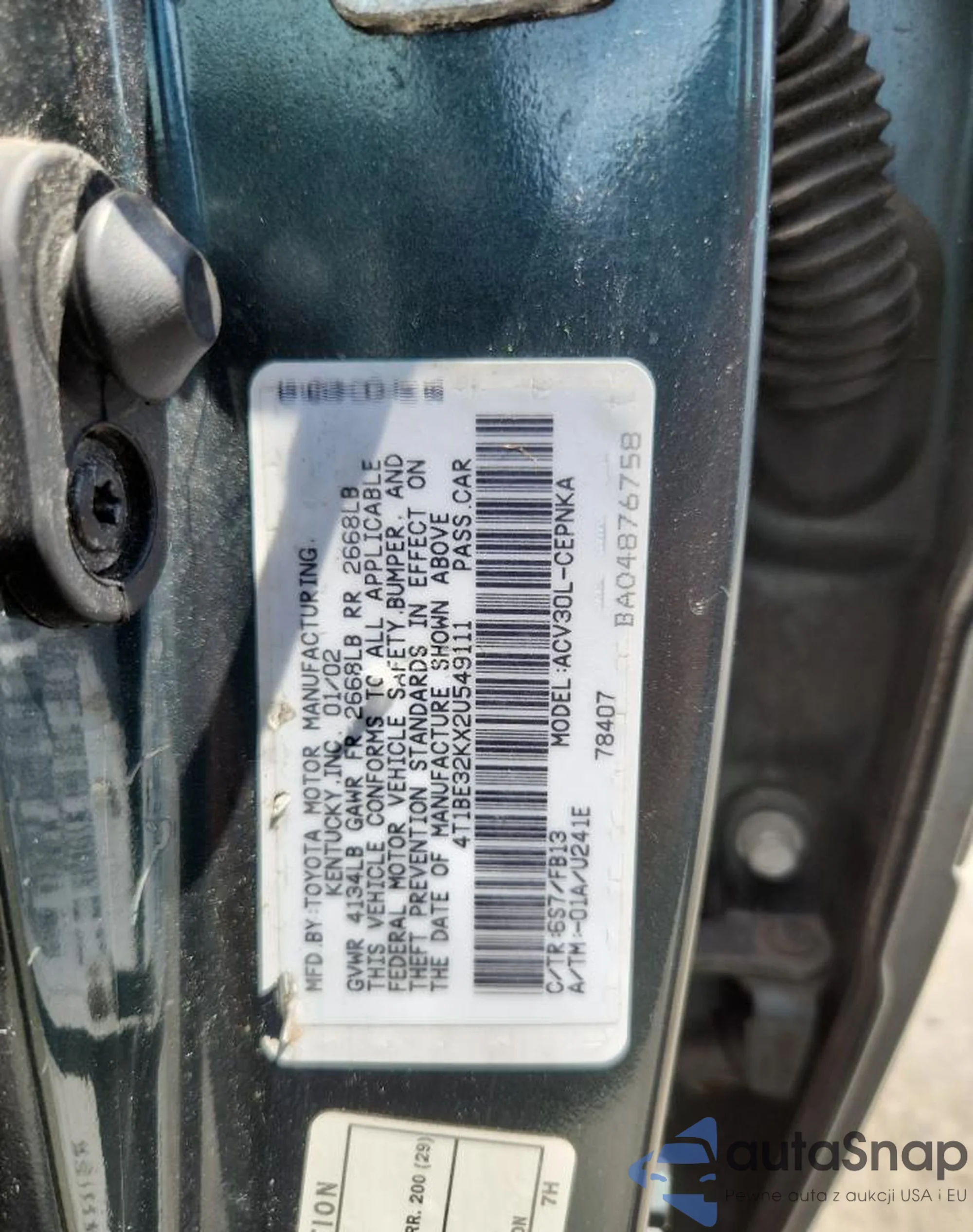 • VIN 4T1BE32KX2U549111