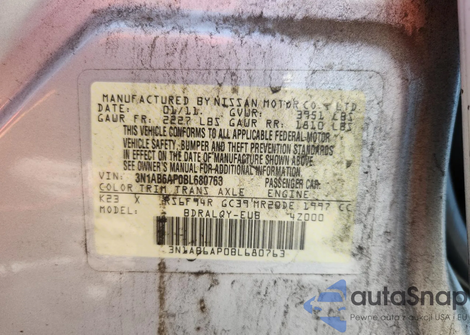 • VIN 3N1AB6AP0BL680763