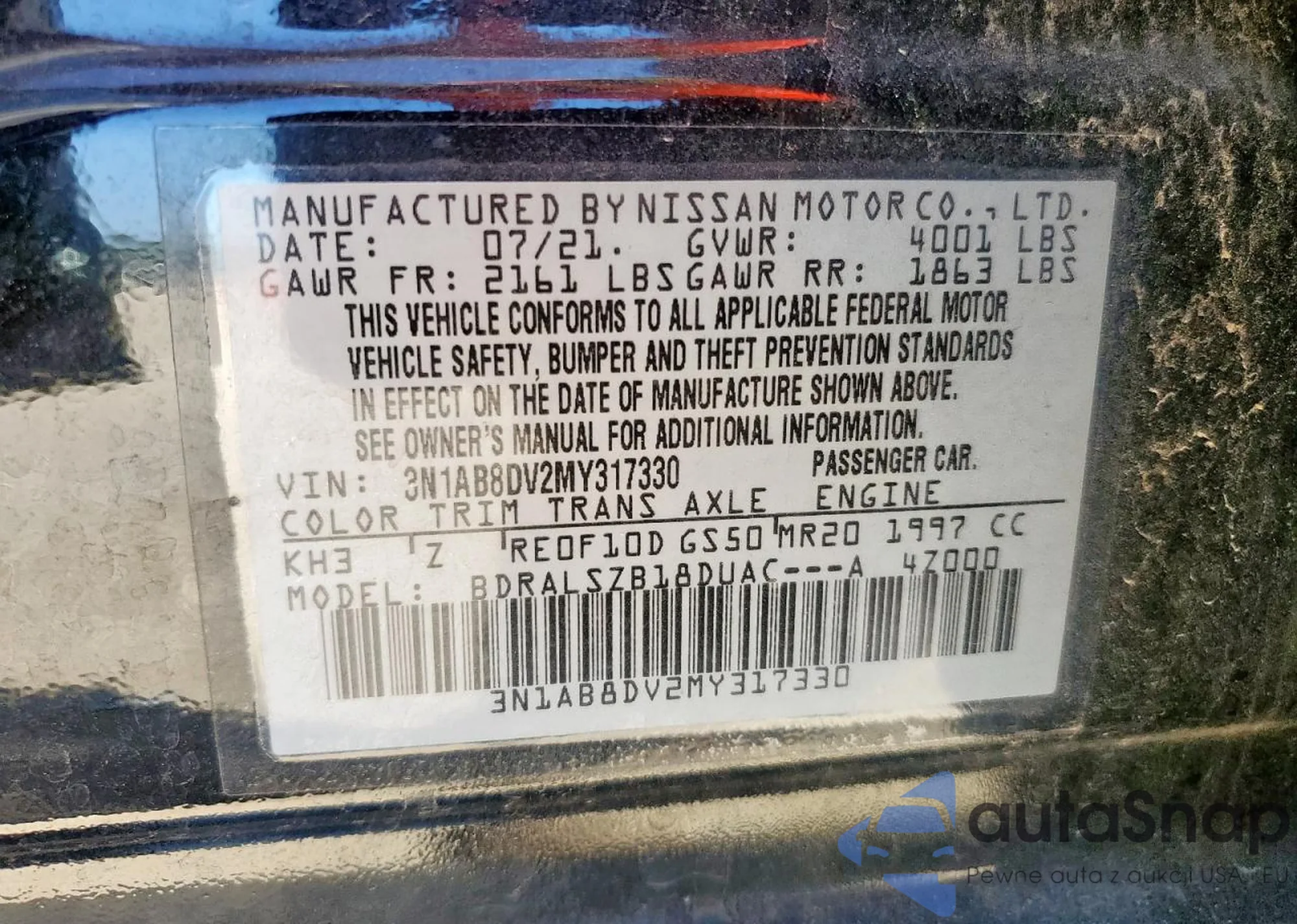 • VIN 3N1AB8DV2MY317330