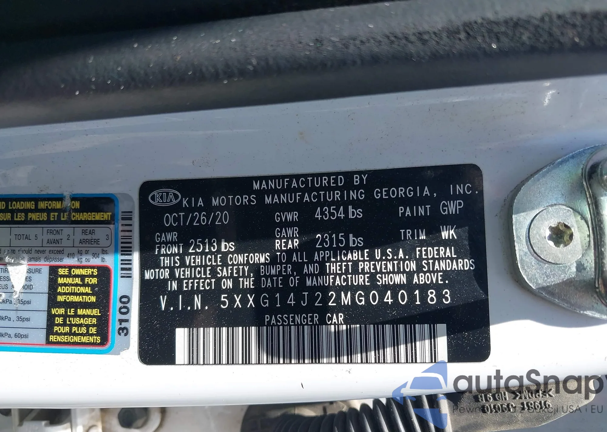 • VIN 5XXGM4A78DG197350