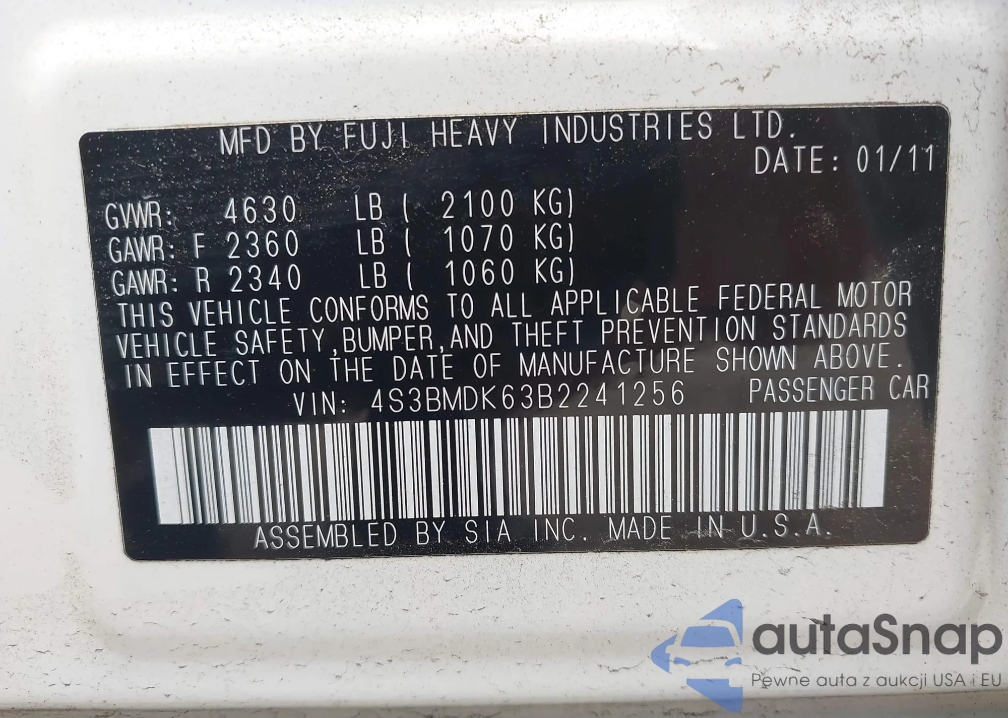 LOT: 42670681 VIN: 4S3BMDK63B2241256