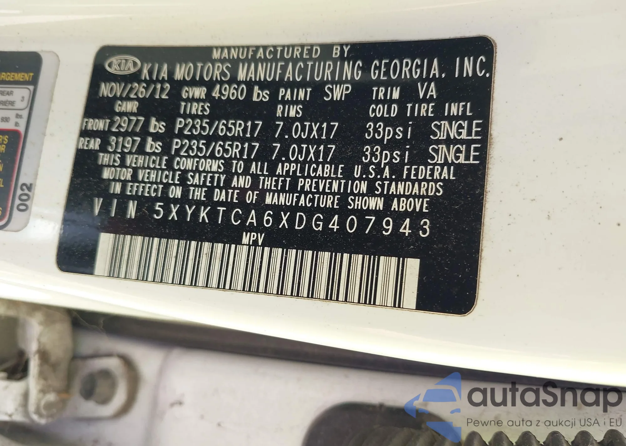 • VIN 5XYKTCA6XDG407943