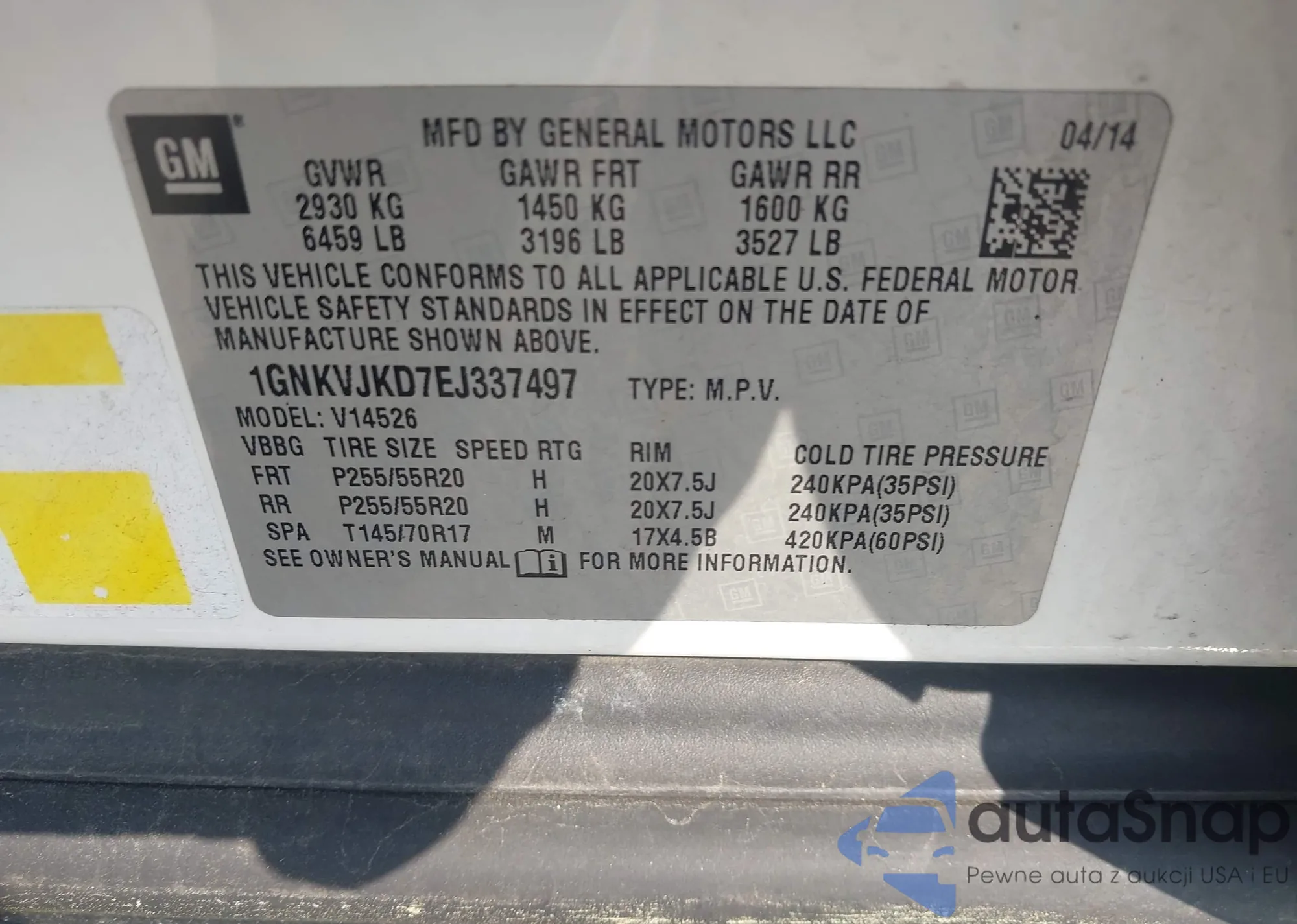 LOT: 42493690 VIN: 1GNKVJKD7EJ337497