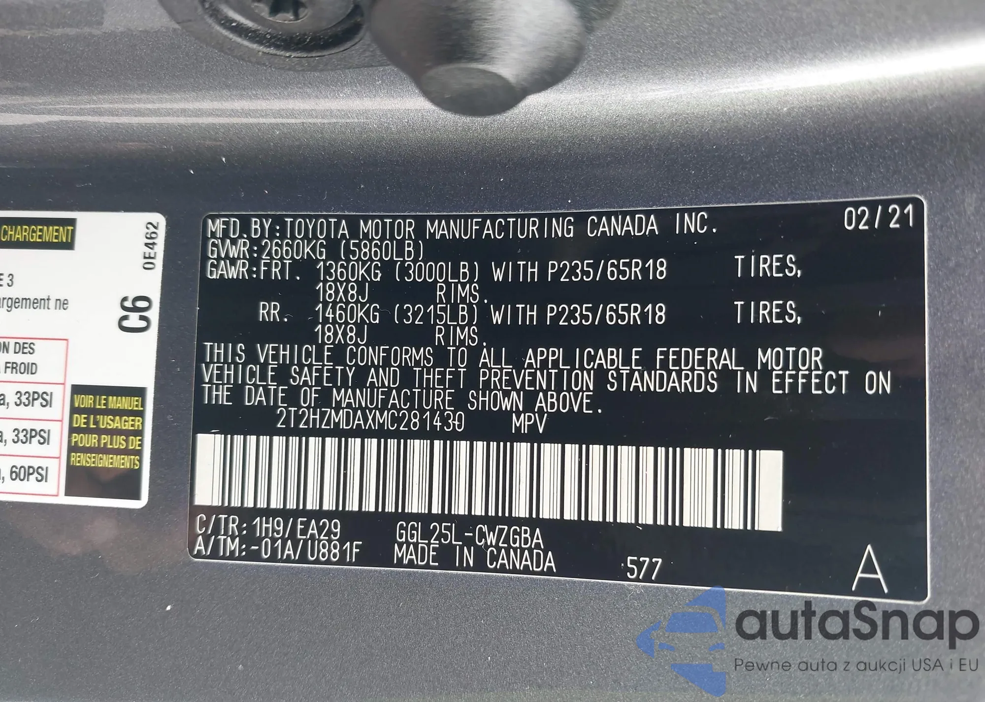 • VIN 2T2HZMDAXMC281430