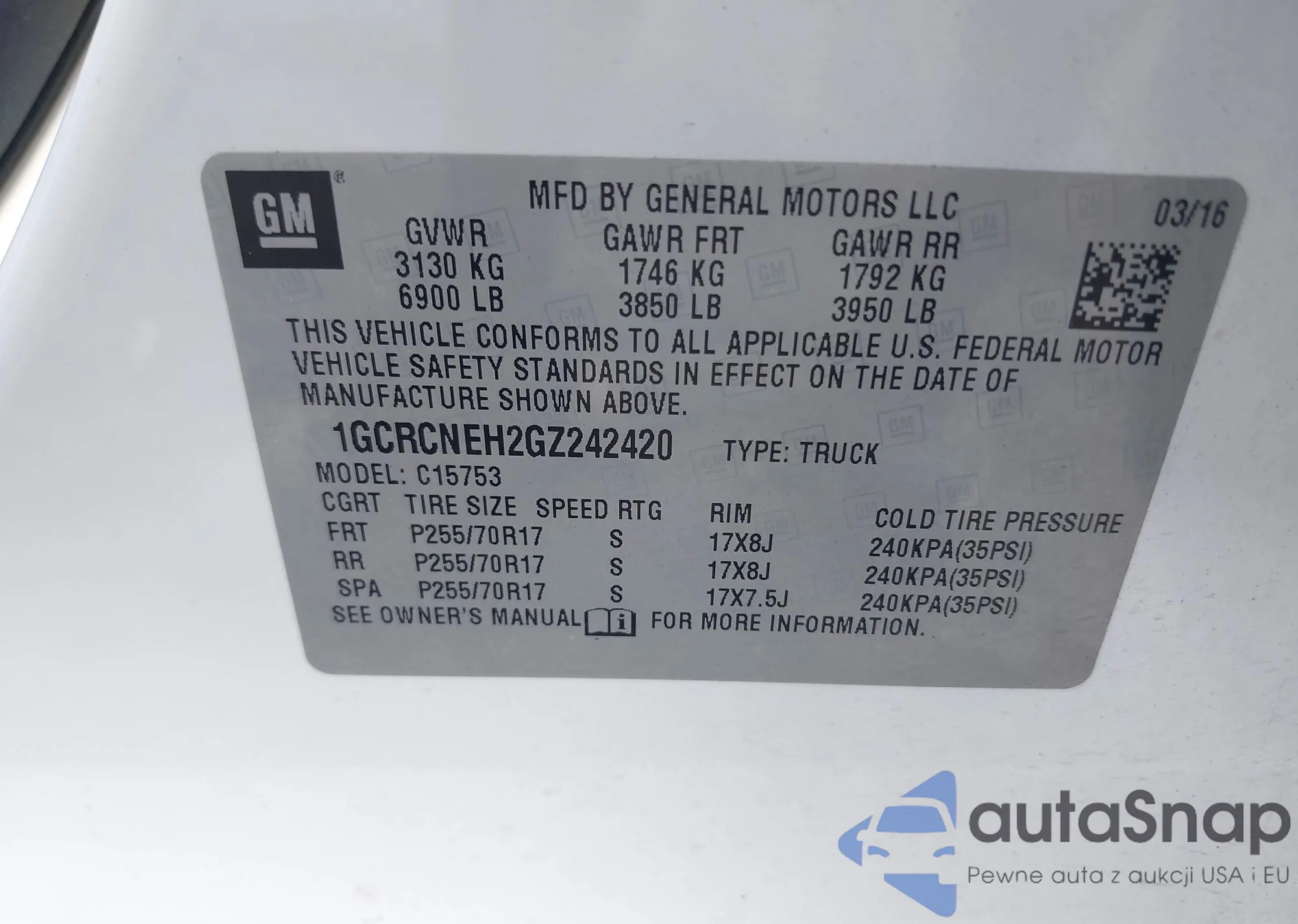 • VIN 1GCRCNEH2GZ242420