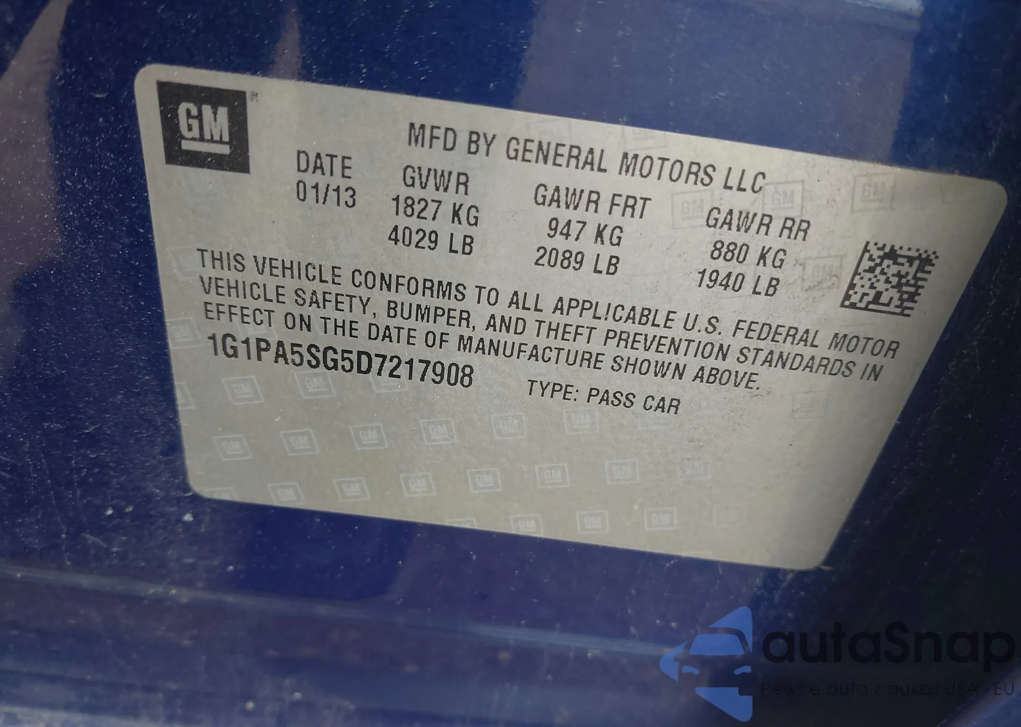 LOT: 42757528 VIN: 1G1PA5SG5D7217908
