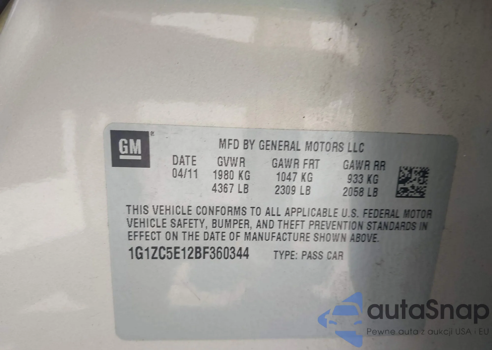 • VIN 1G1PA5SG5D7217908