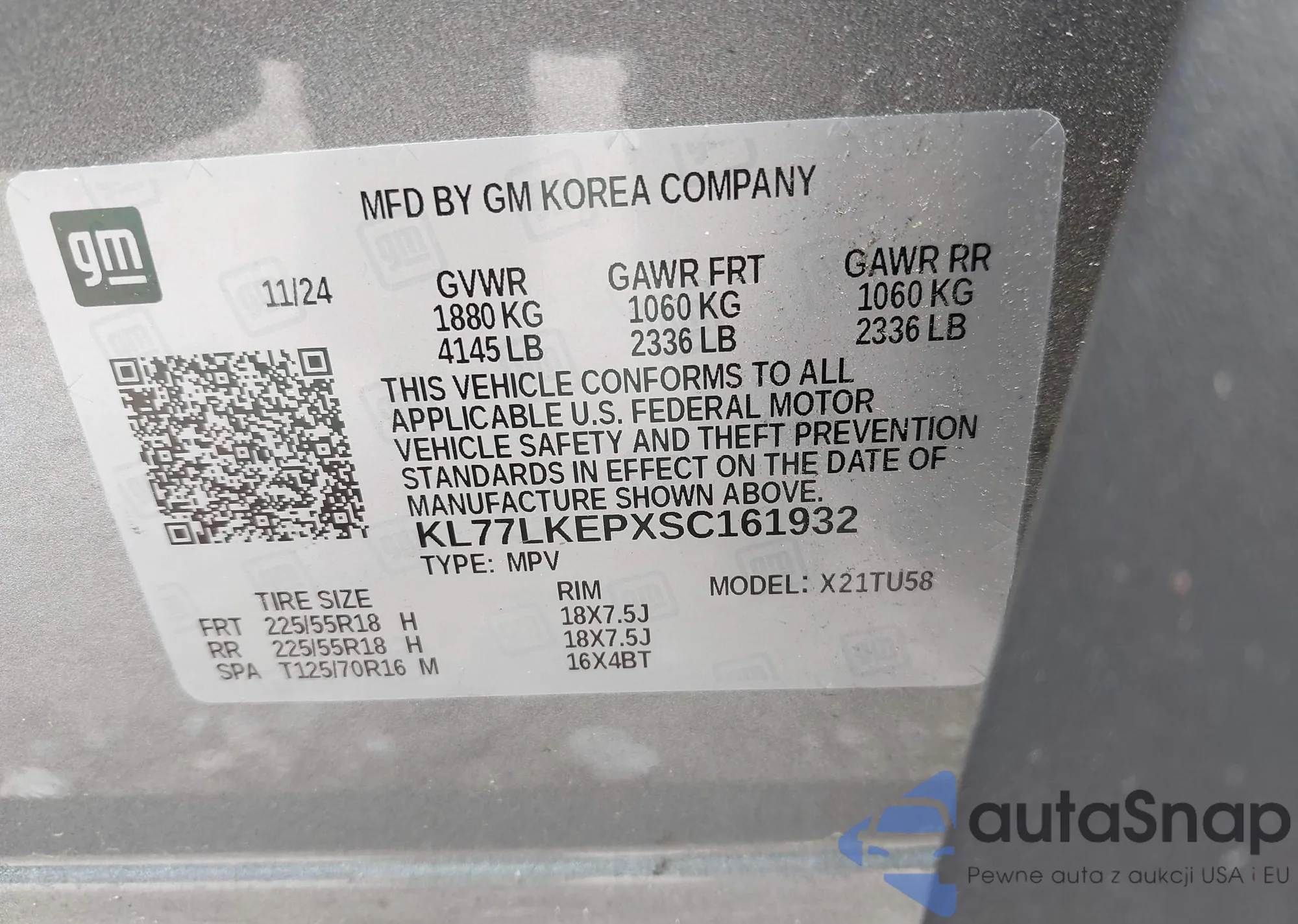 LOT: 42279999 VIN: KL77LKEPXSC161932