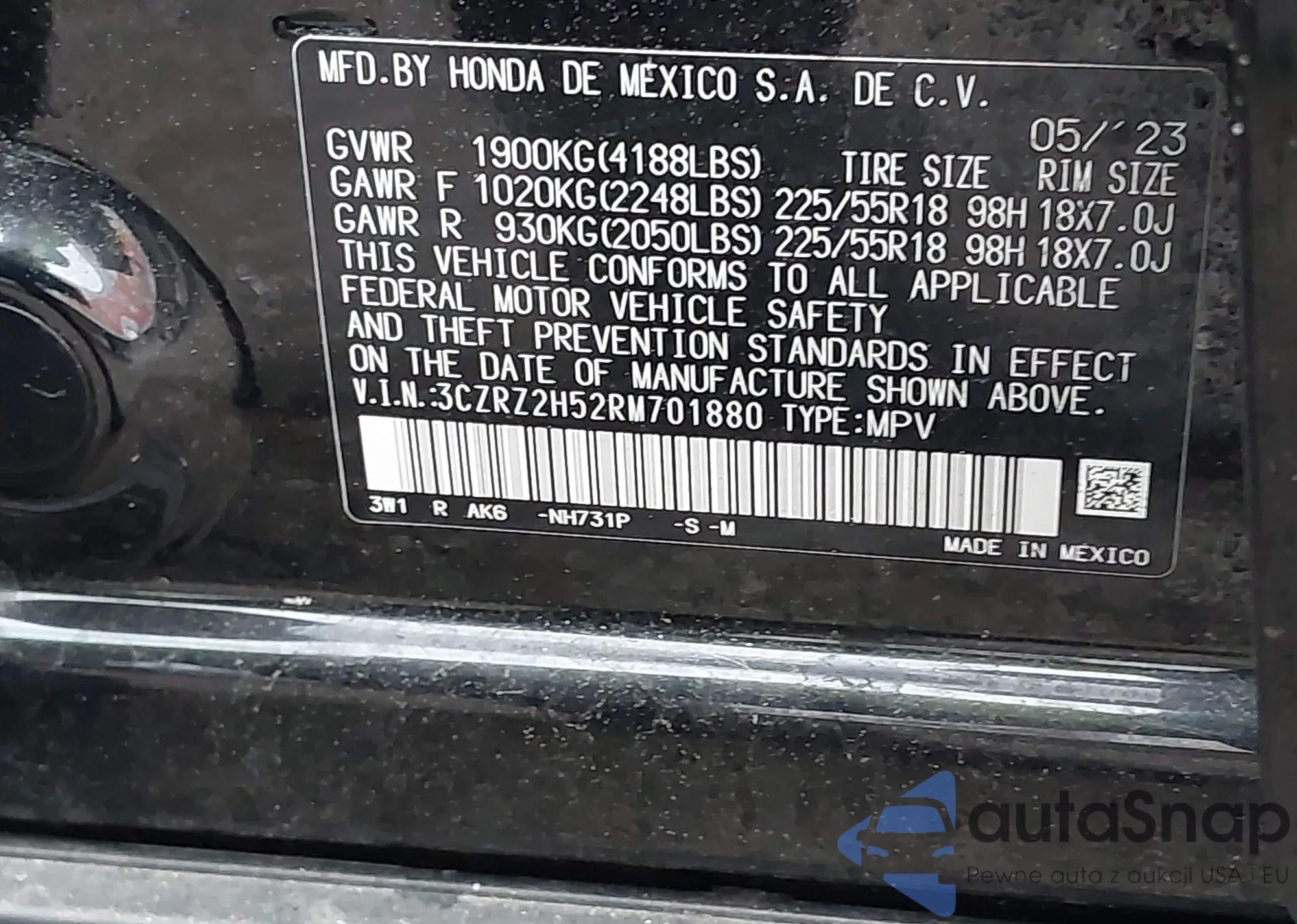 • VIN 3CZRZ2H52RM701880
