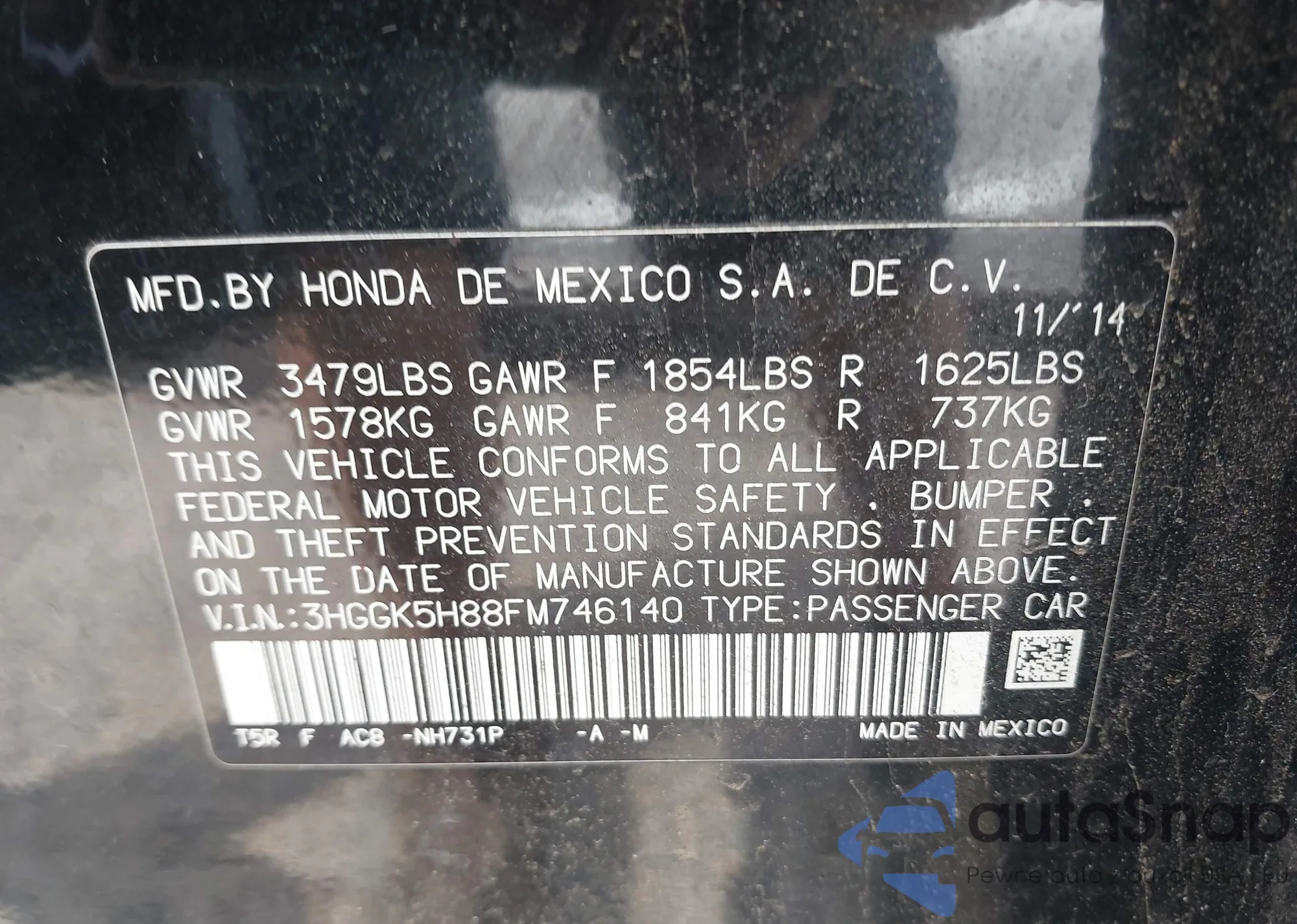 • VIN 3HGGK5H88FM746140
