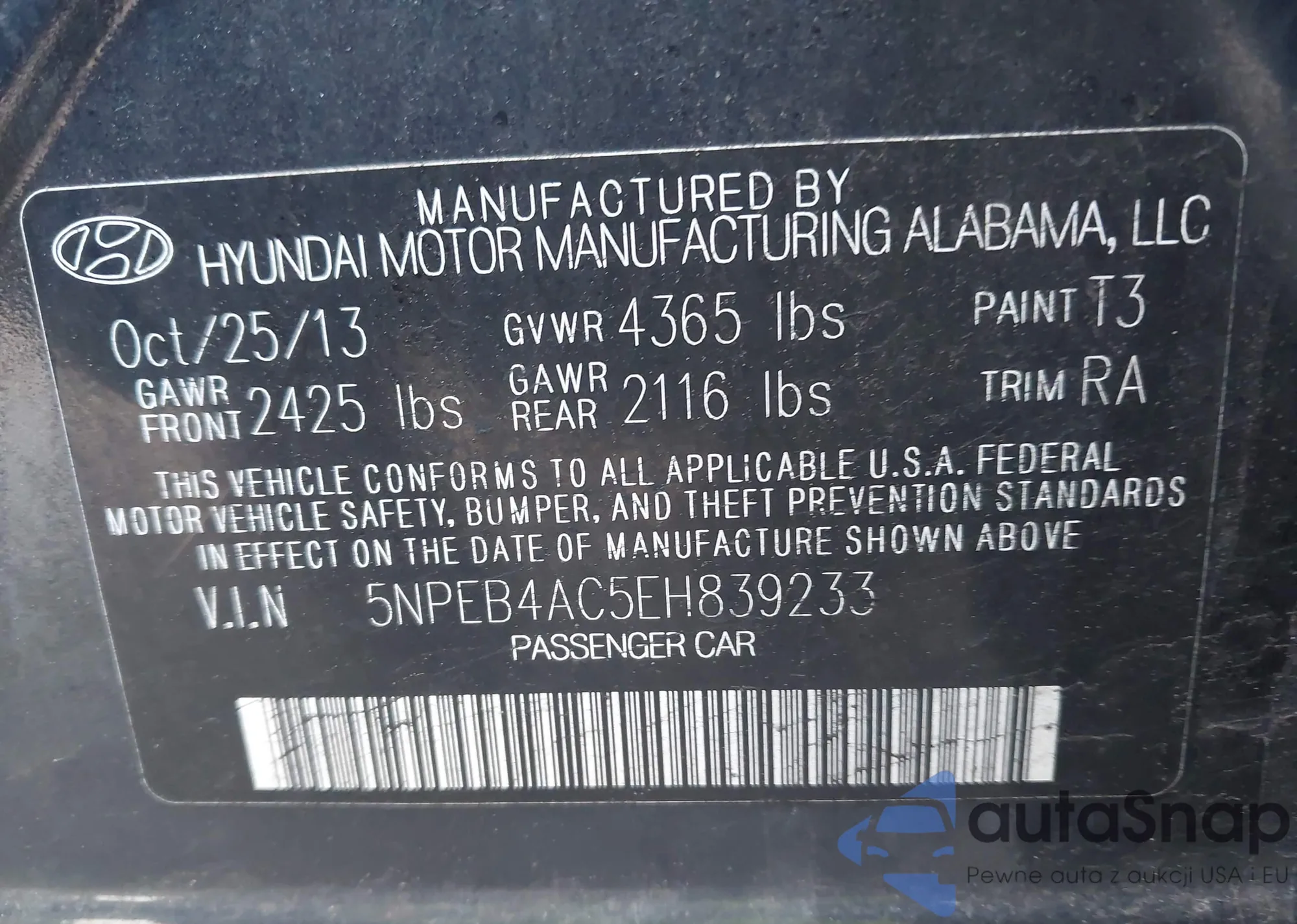 • VIN 5NPEB4AC5EH839233