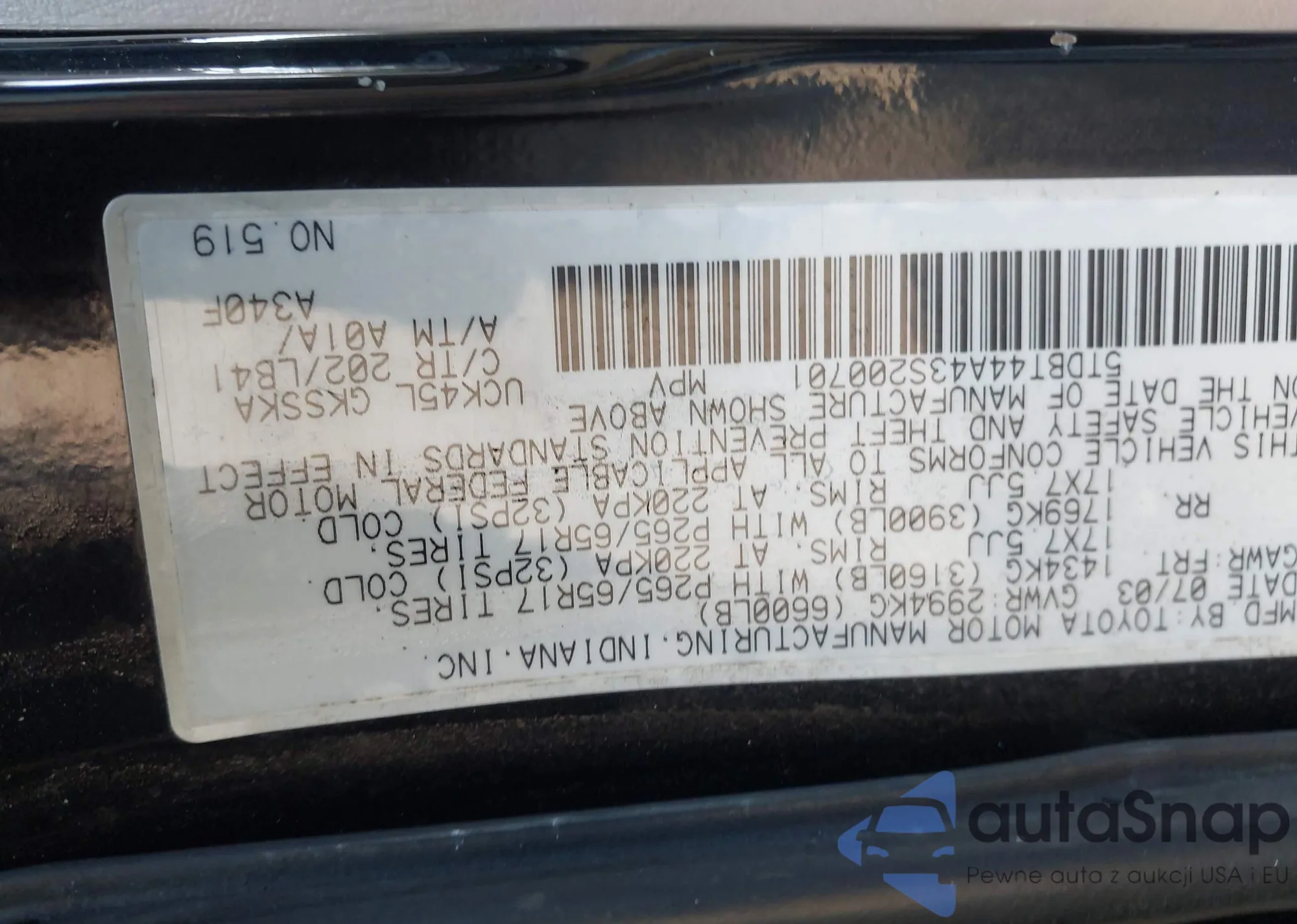 LOT: 40860440 VIN: 5TDBT44A43S200701
