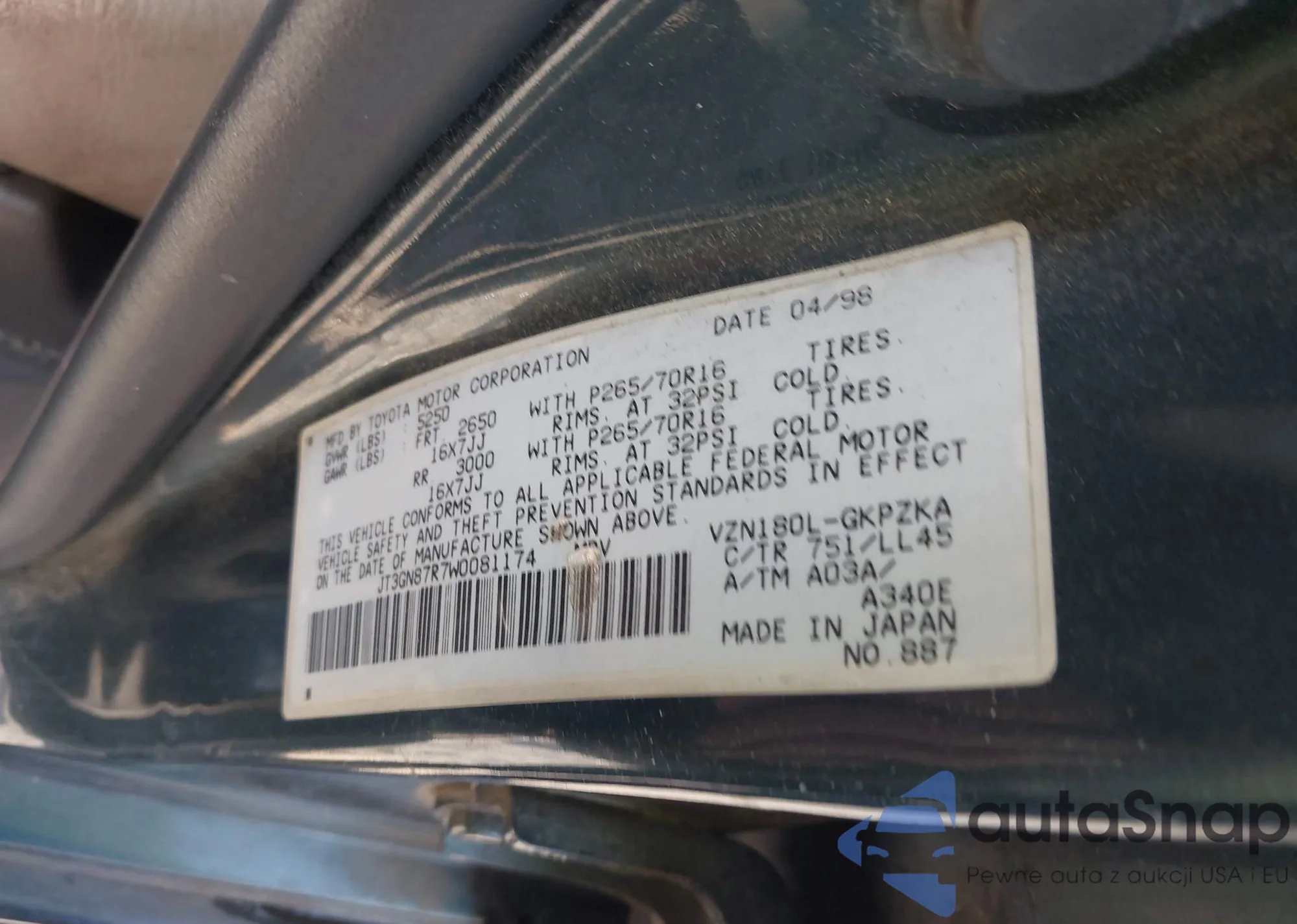 LOT: 41931054 VIN: JT3GN87R7W0081174