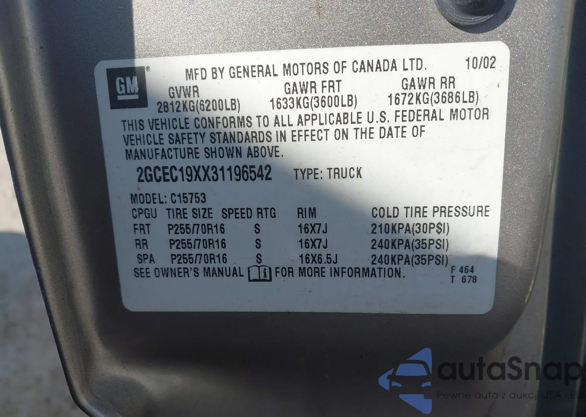• VIN 1G1JC6SH5D4196087