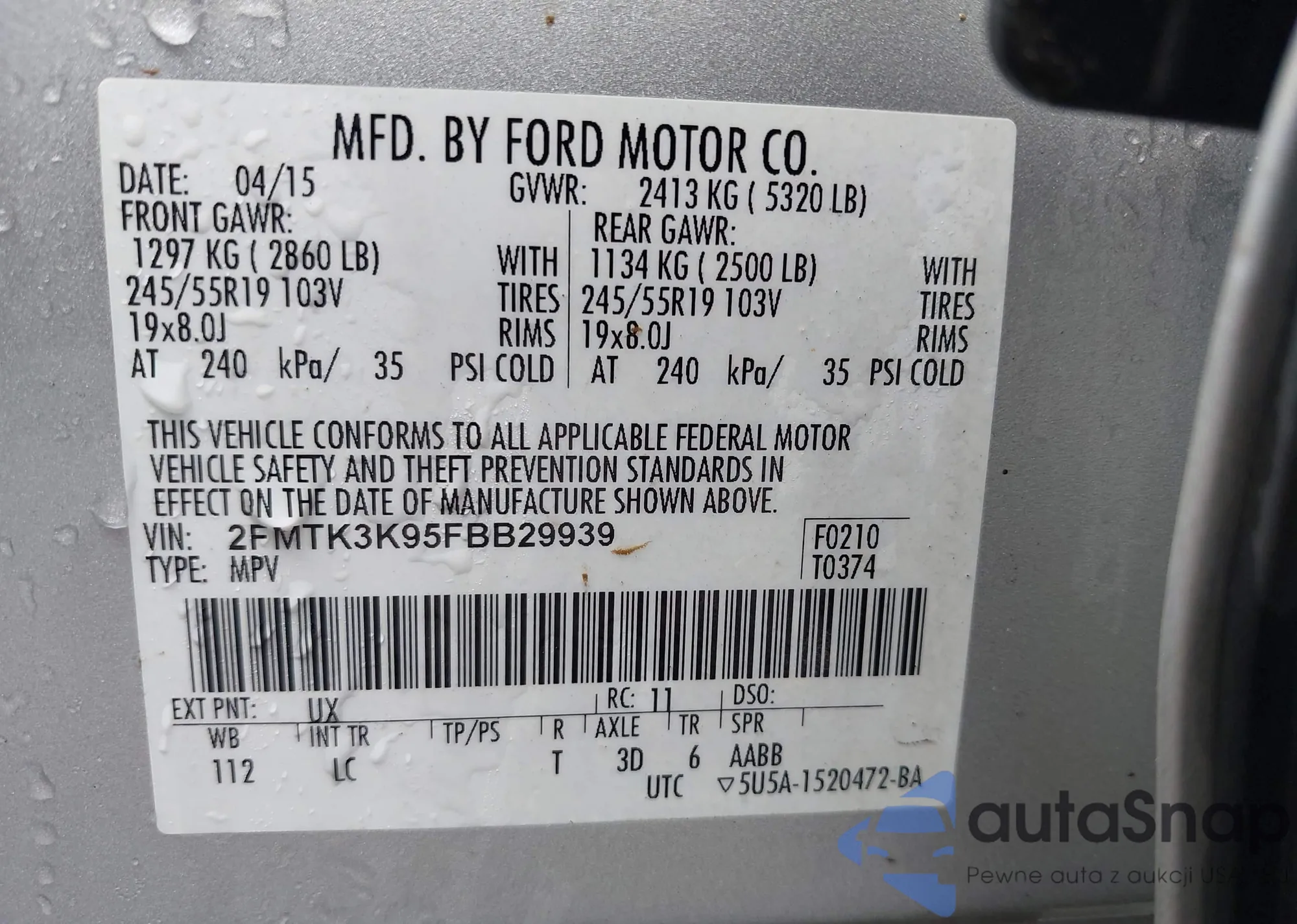 LOT: 41813834 VIN: 2FMTK3K95FBB29939