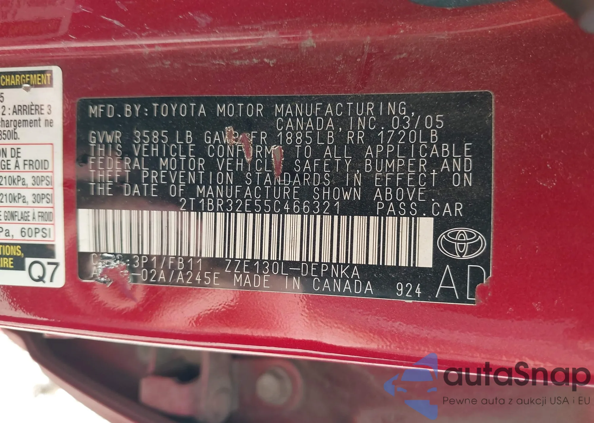• VIN 2T1BR32E55C466321