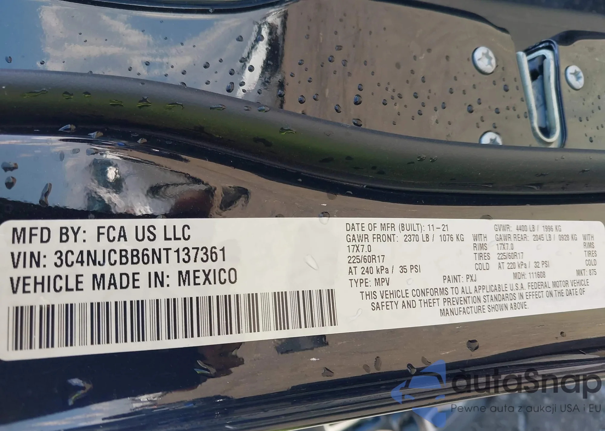 • VIN 3C4NJCBB6NT137361