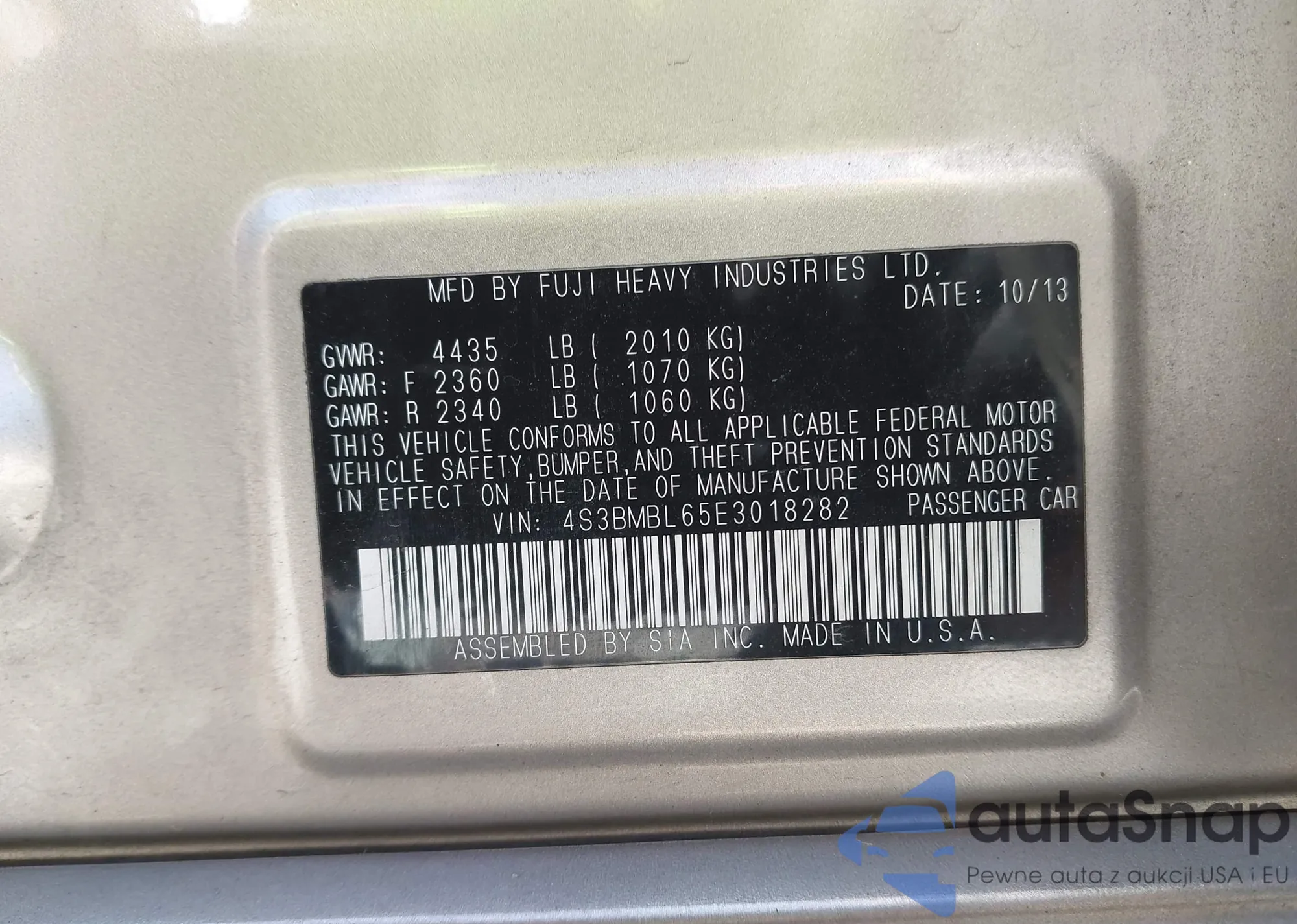 LOT: 42699796 VIN: WP0AA2A75HL102557