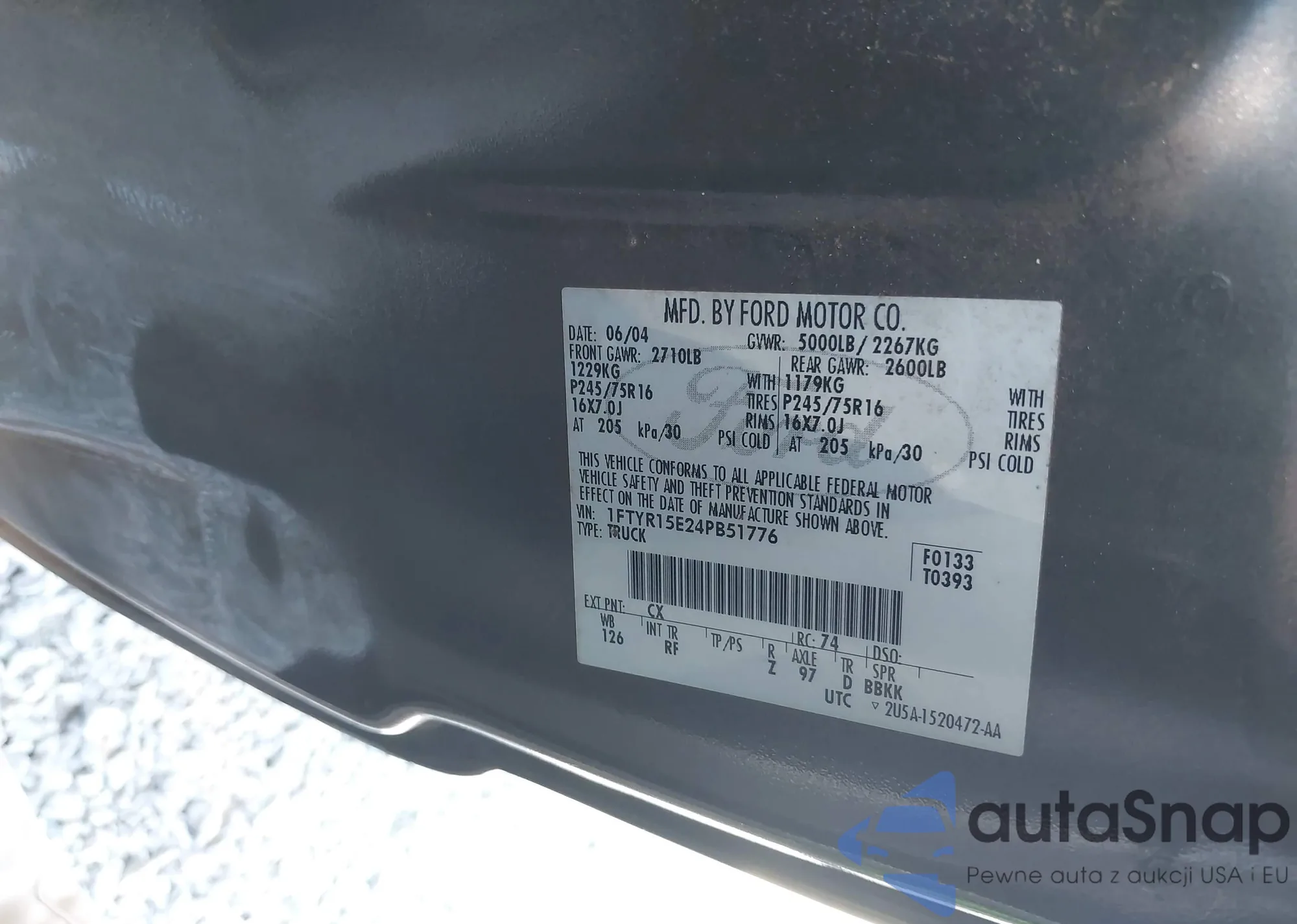 • VIN 1FTYR15E24PB51776