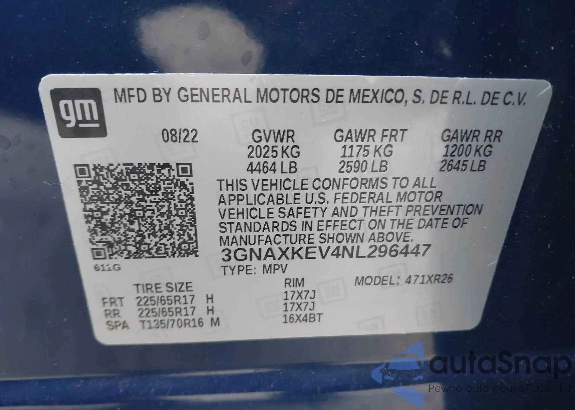 • VIN 4T3E6RFV8NU083868