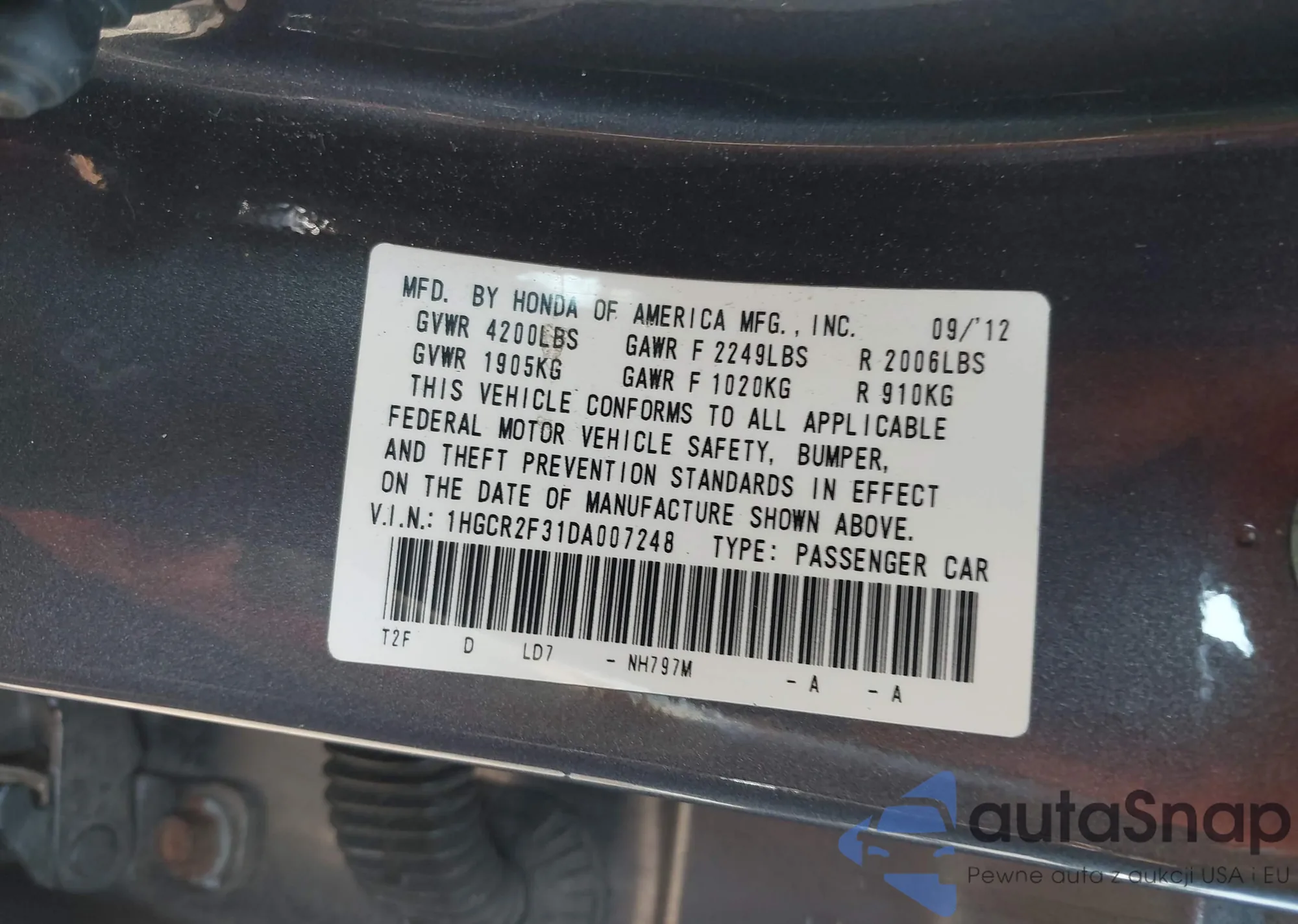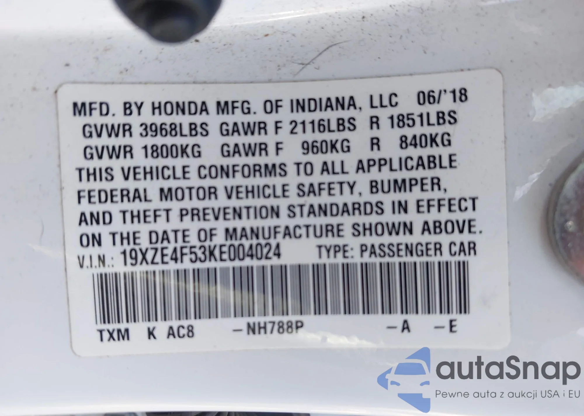 LOT: 42690761 VIN: 19XZE4F53KE004024