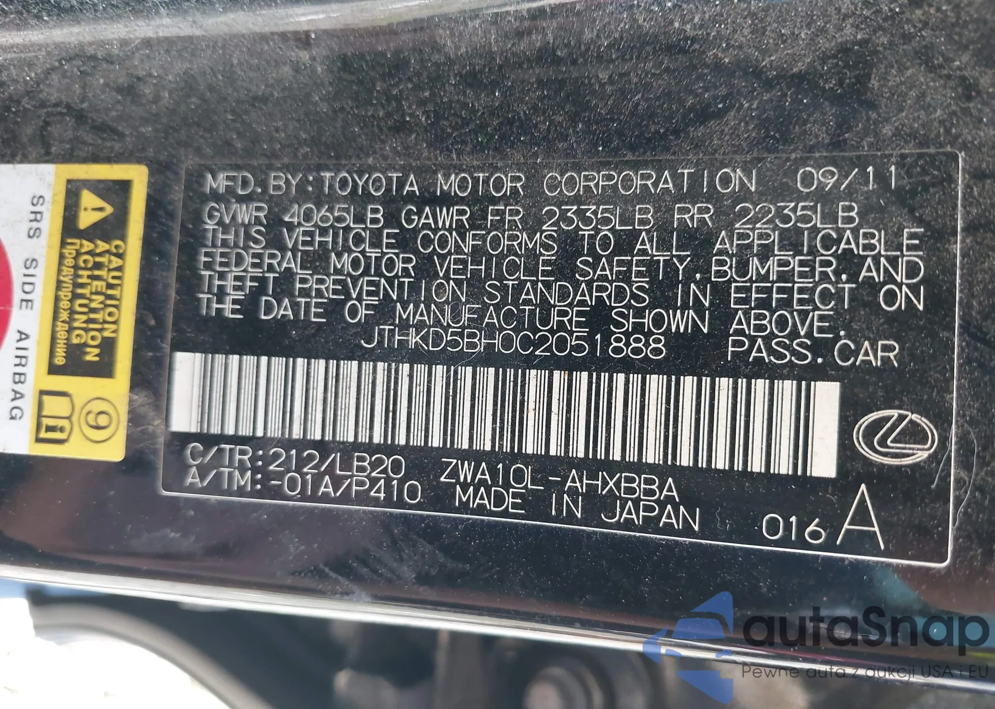 LOT: 42726479 VIN: 19XFA16989E029883