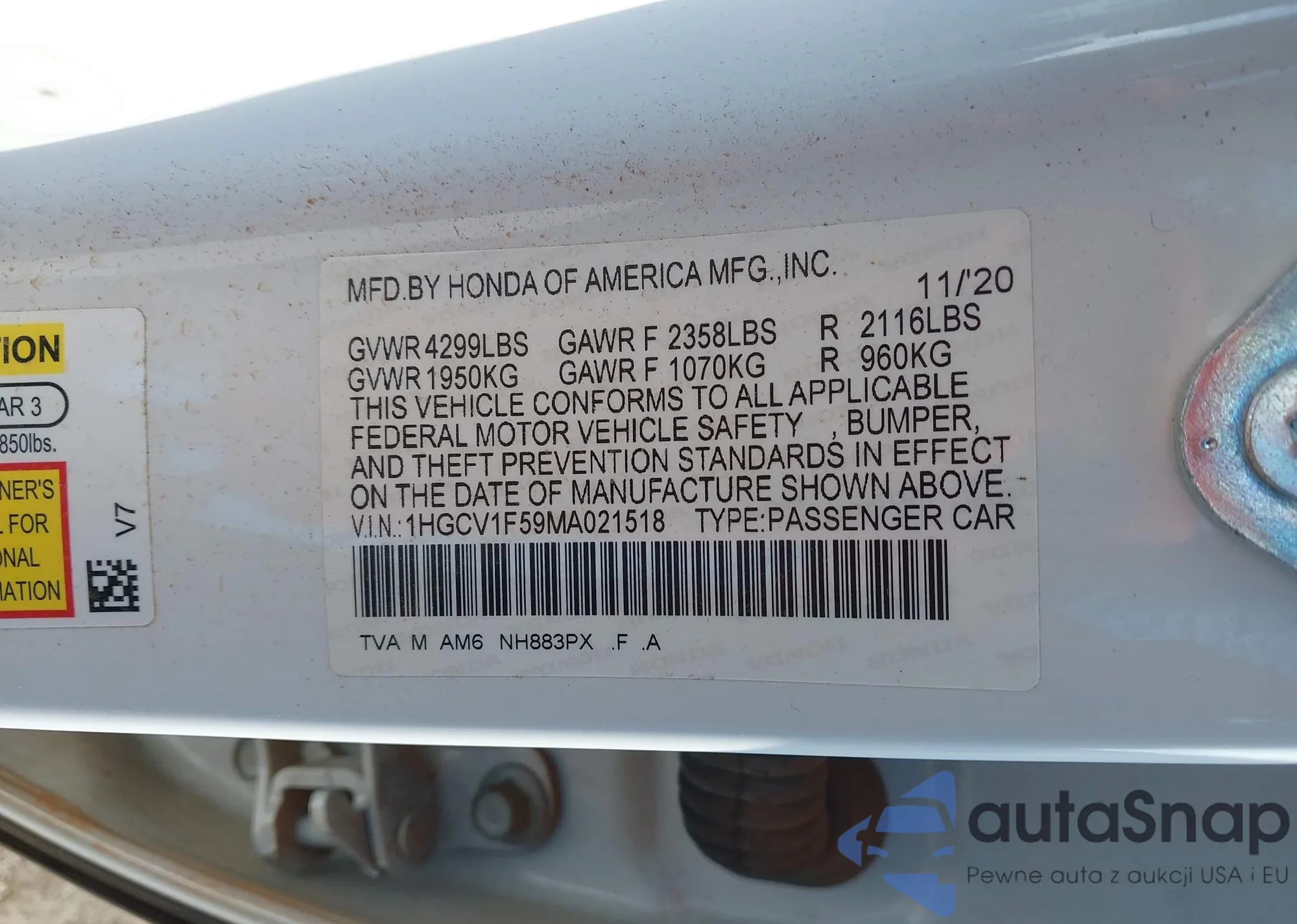 LOT: 42575374 VIN: 2HGFE2F53SH576711