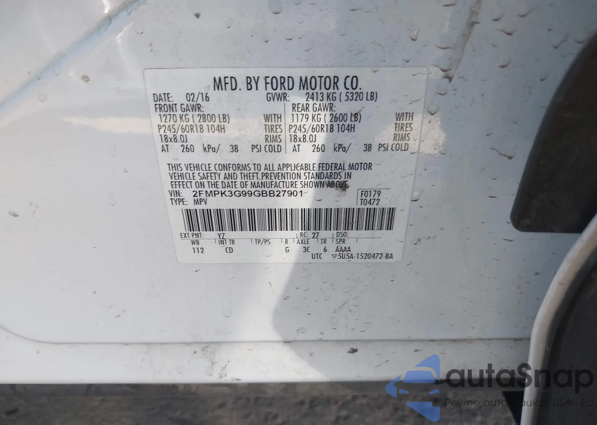 LOT: 42820136 VIN: WA1CCAFP1GA063606