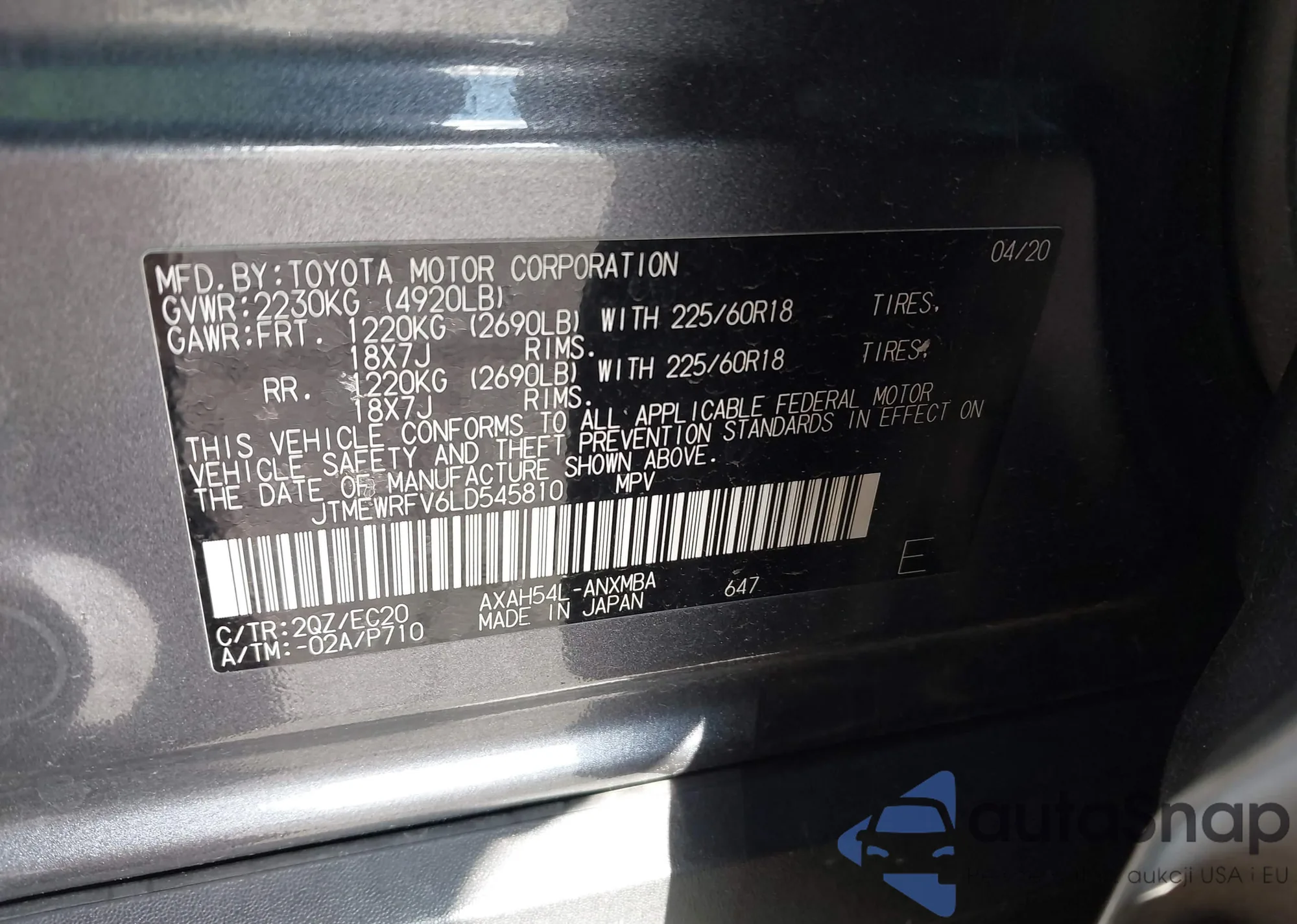 • VIN JTMEWRFV6LD545810