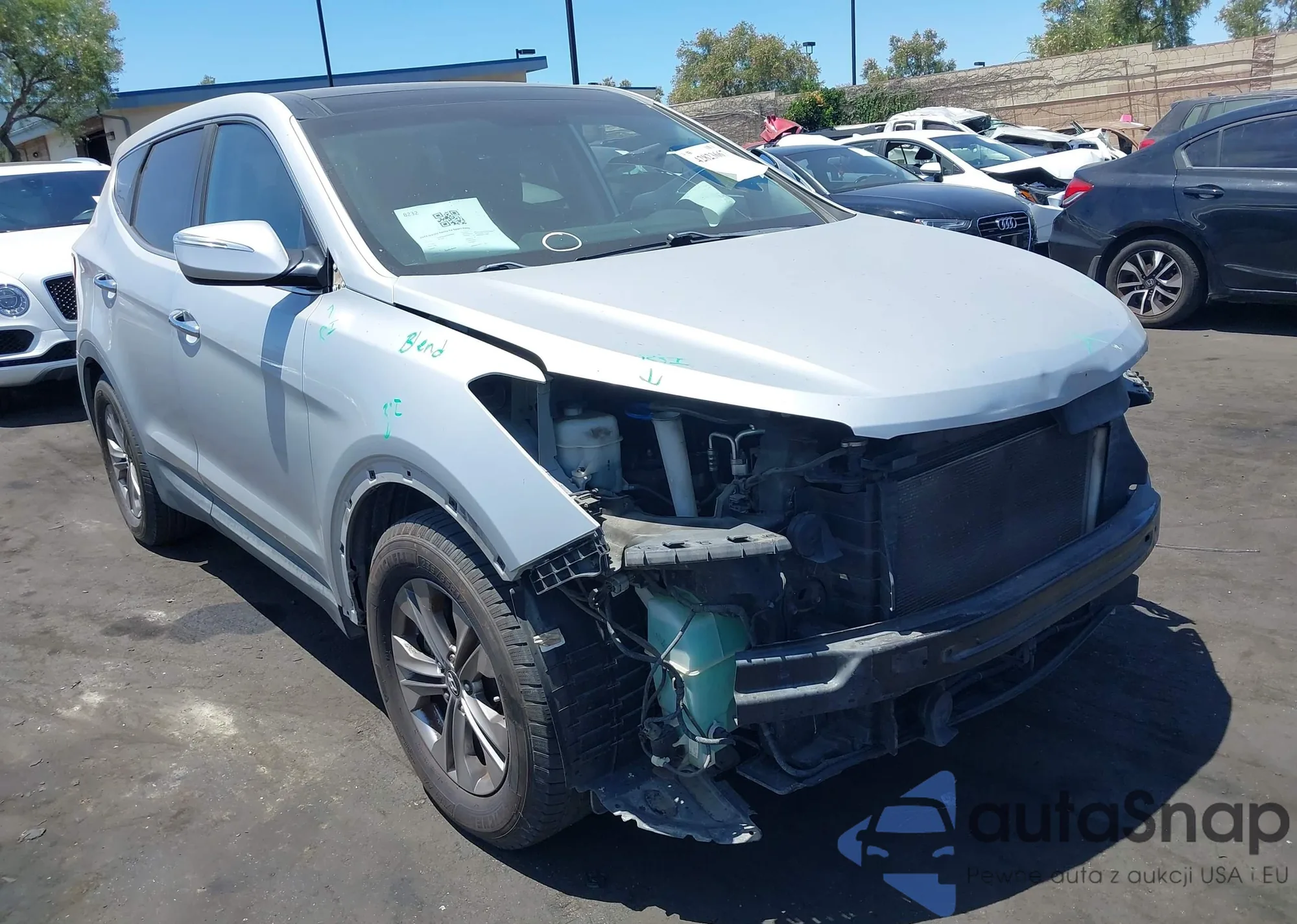 2013 Hyundai Santa Fe Sport z USA, uszkodzony, nr VIN 5XYZU3LB9DG099959