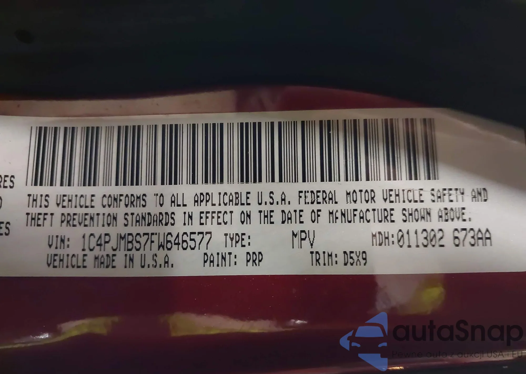 LOT: 41404911 VIN: 1C4PJMBS7FW646577