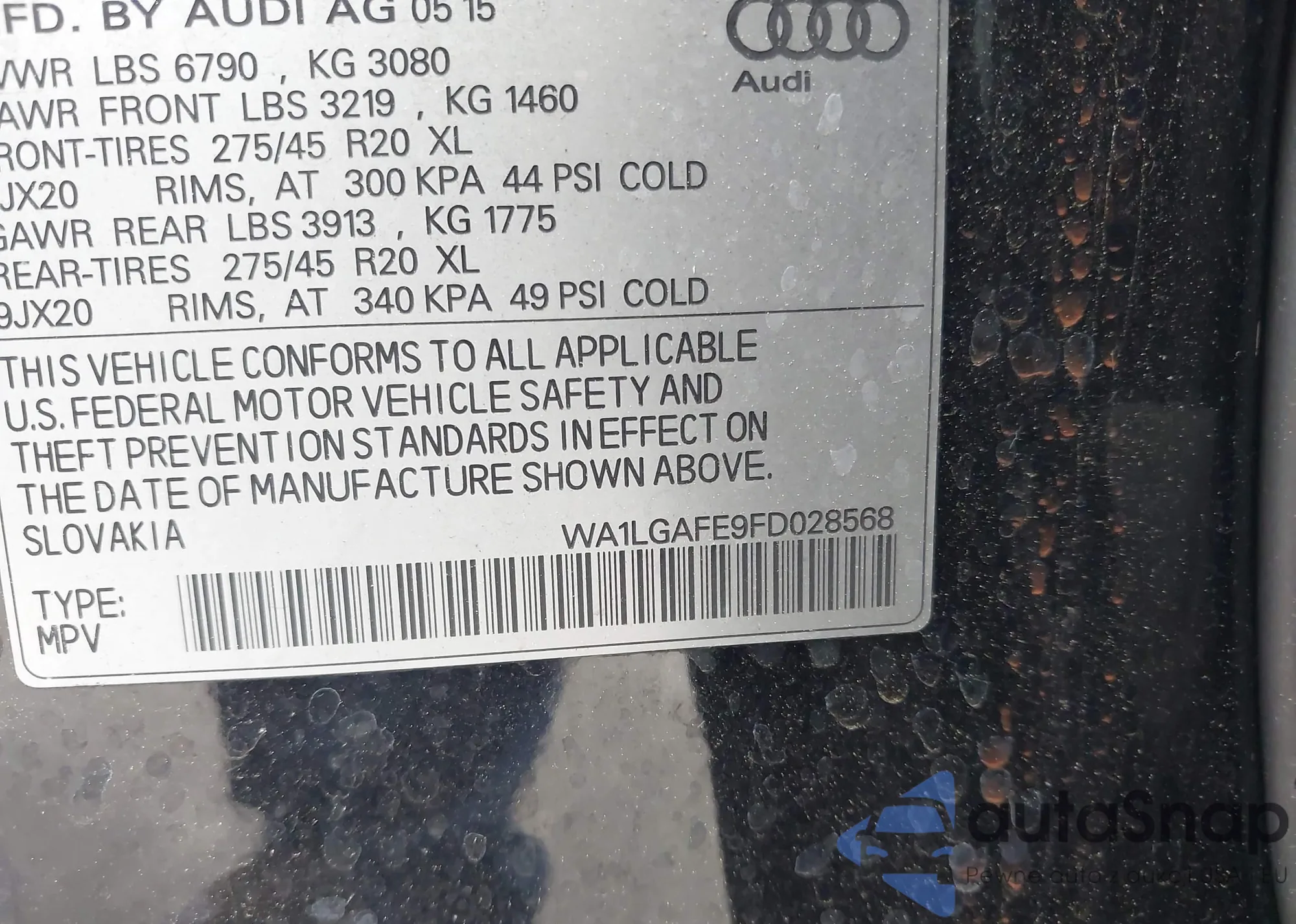 • VIN WA1LGAFE9FD028568