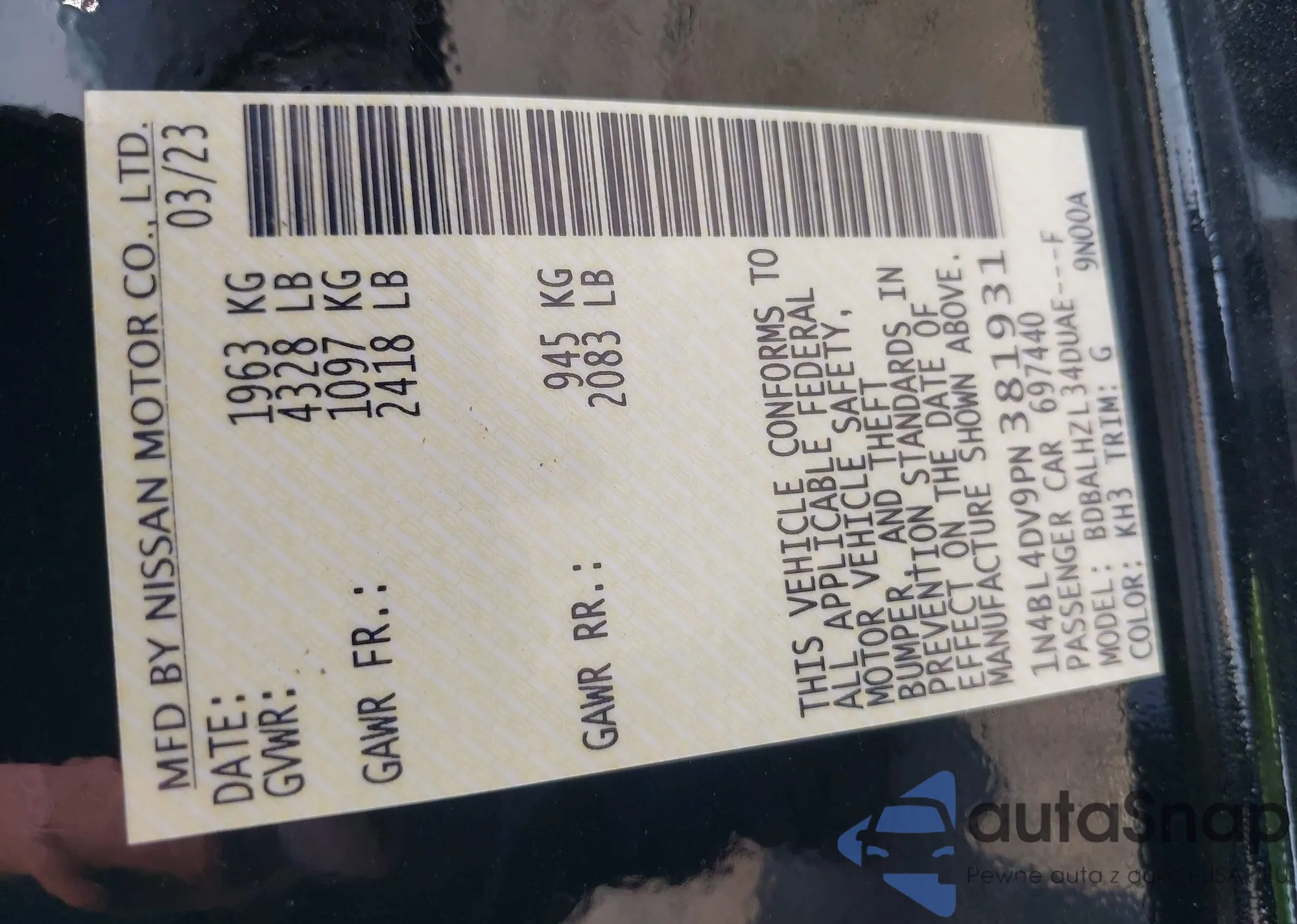 • VIN 1N4BL4DV5NN354495