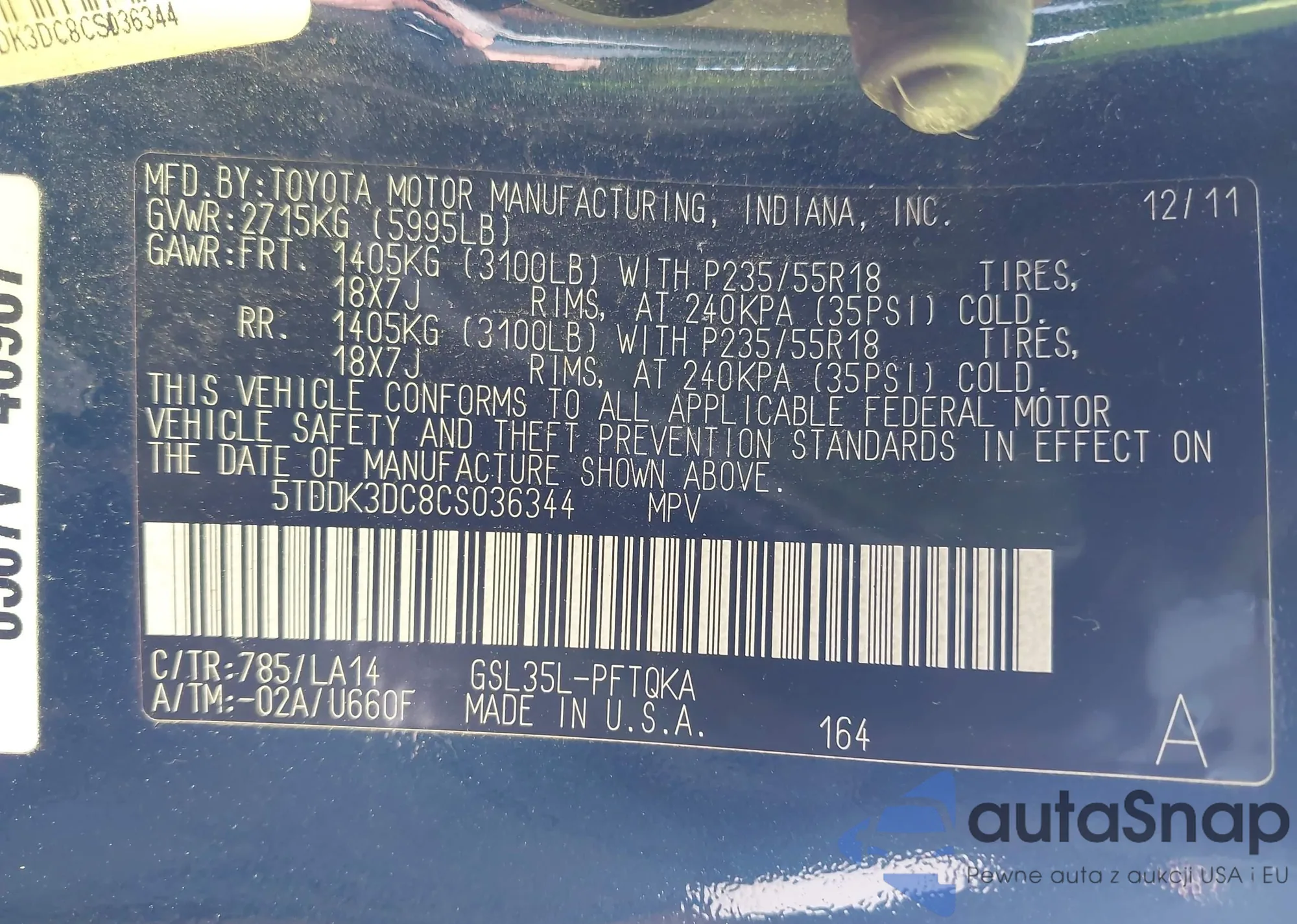 • VIN 1N4BL4CV6KC209944