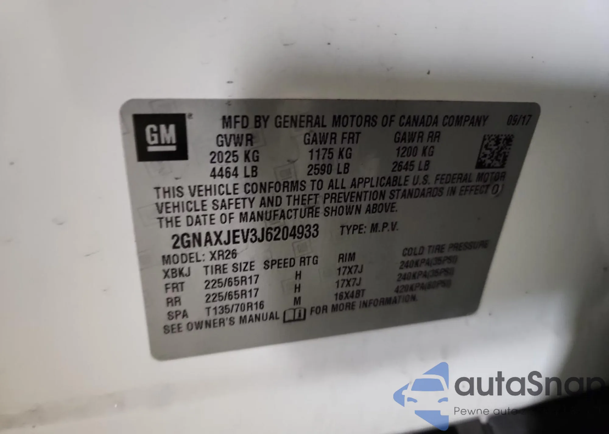 • VIN 2GNAXJEV3J6204933
