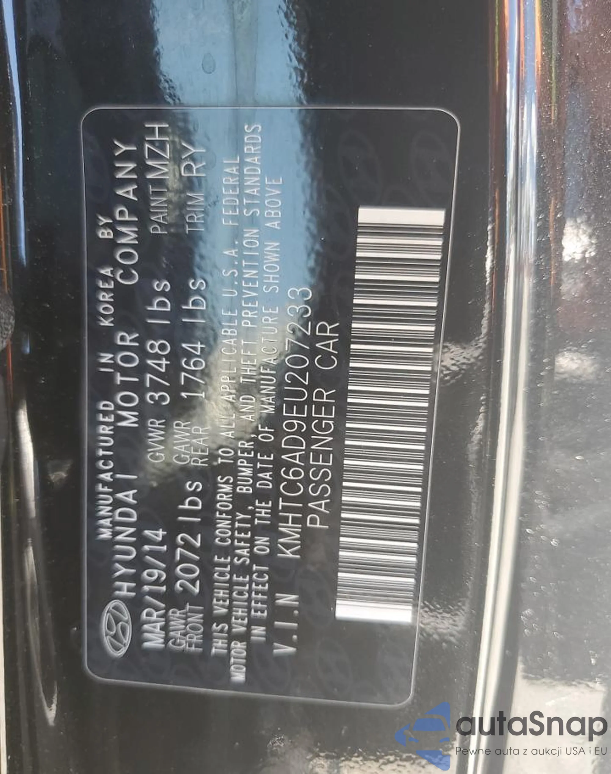 • VIN KMHTC6AD9EU207233