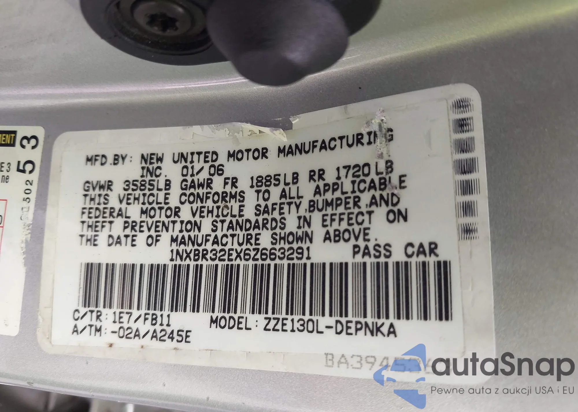 • VIN 1NXBR32EX6Z663291