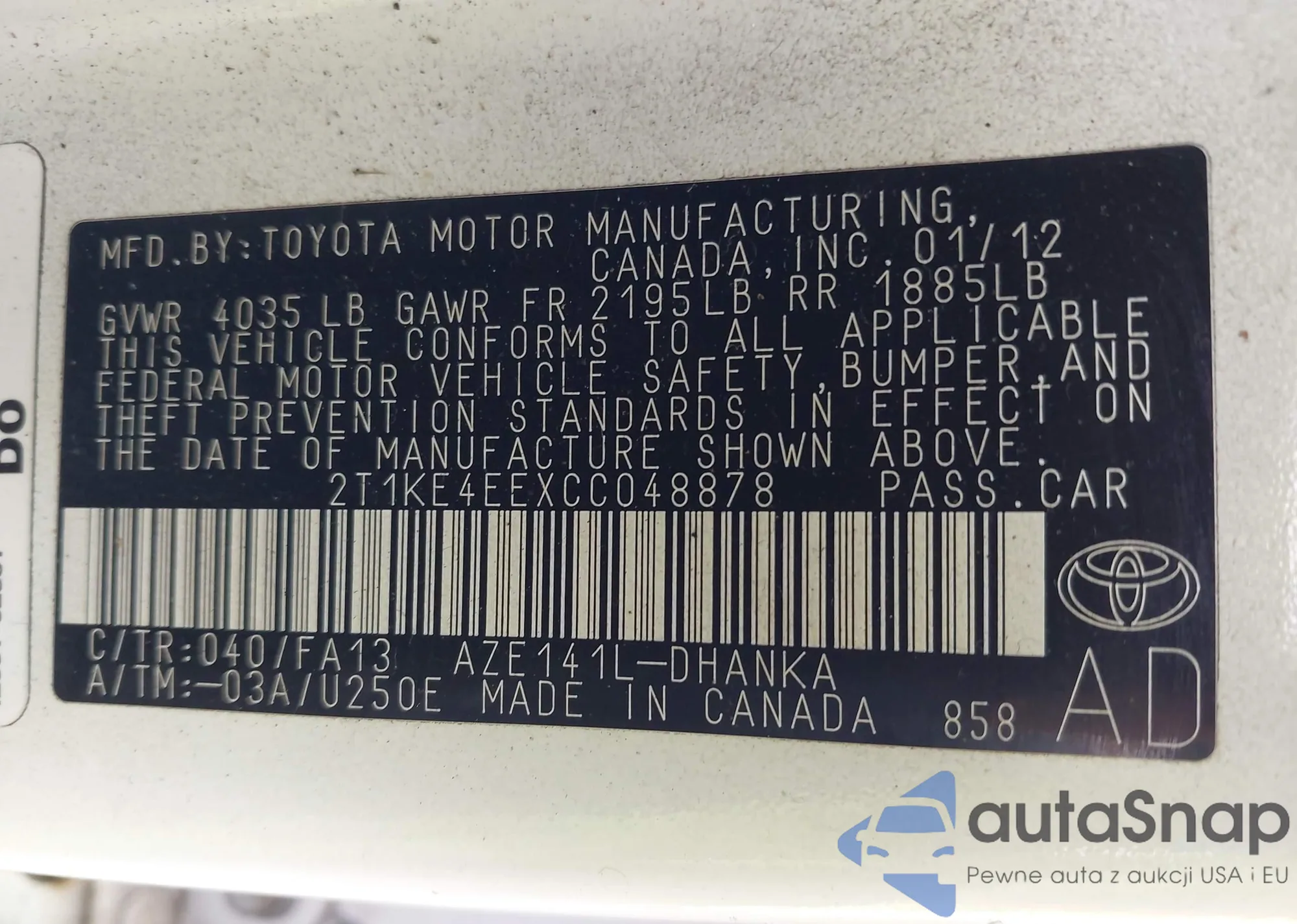 LOT: 42848688 VIN: JTDKB20U053122087