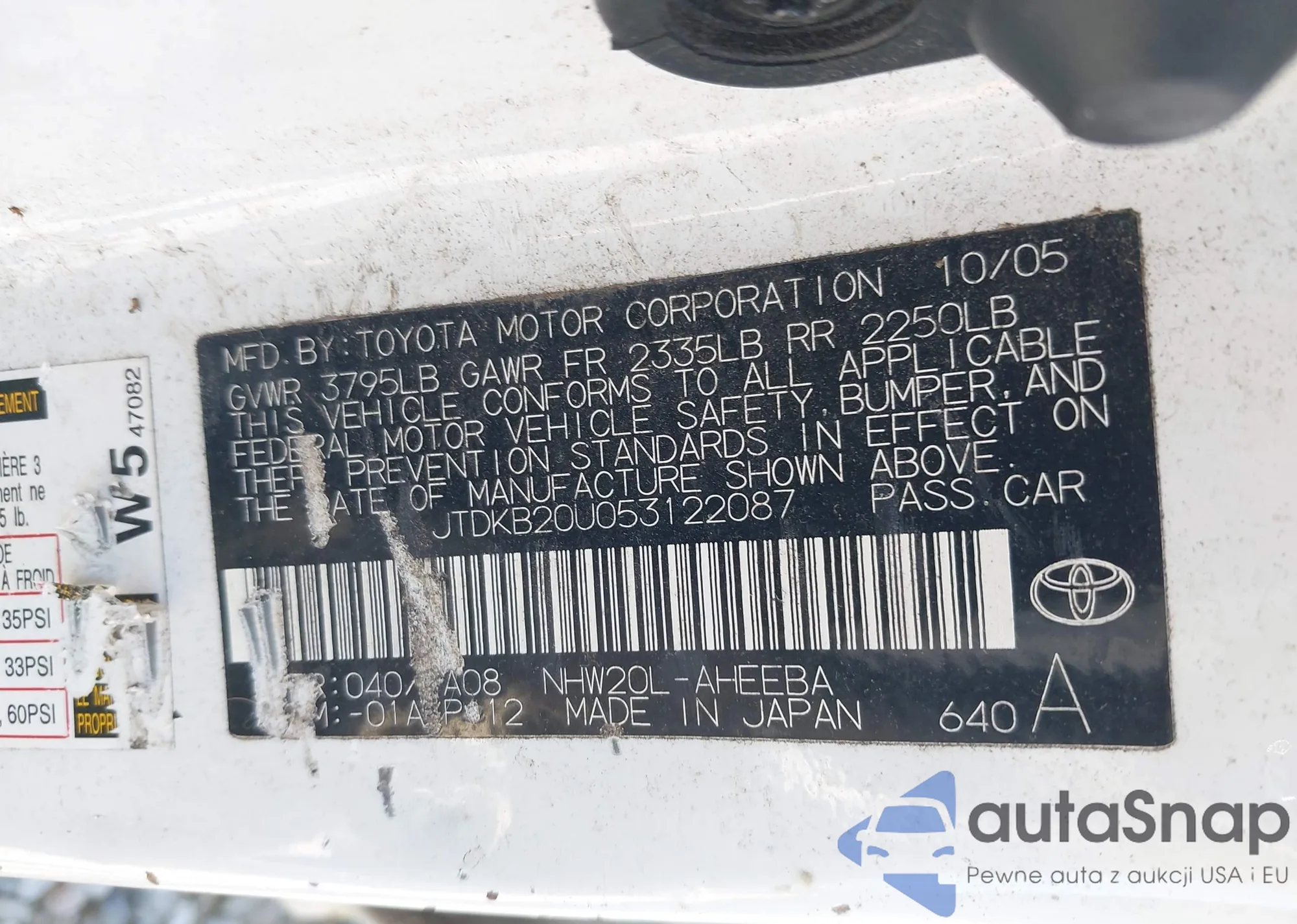 • VIN JTDKB20U053122087
